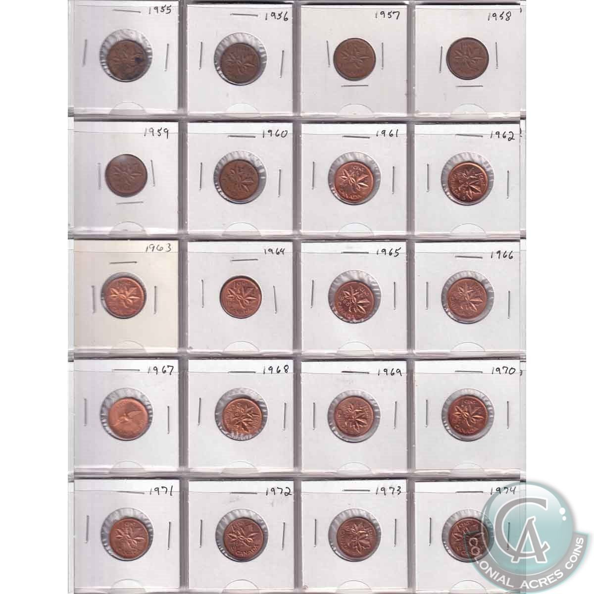 Mixed Lot of Canadian 1-cents dated 1916-2012. You will receive 1916-1919, 1928, 1929, 1931-1936, 1938-2012. 89pcs