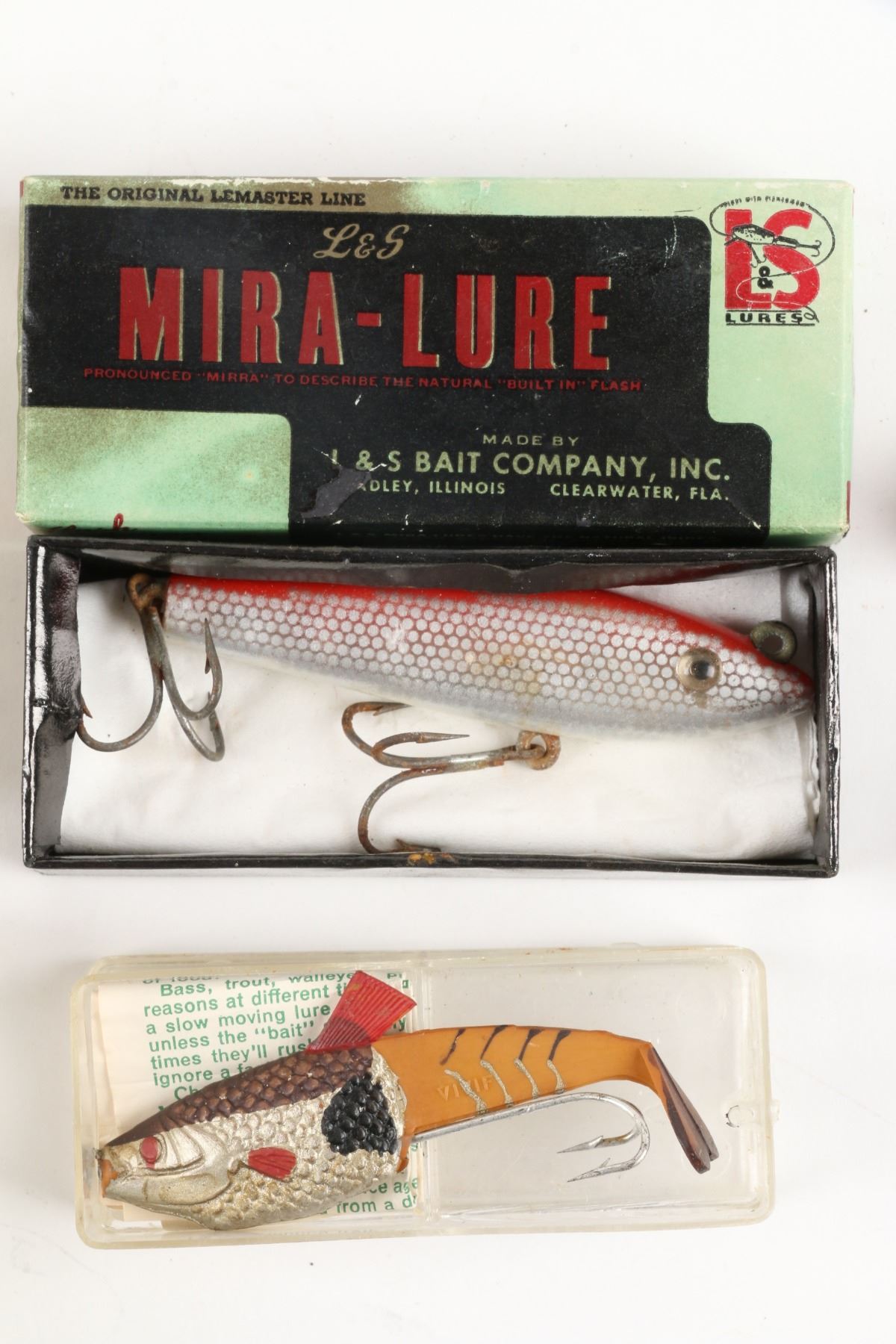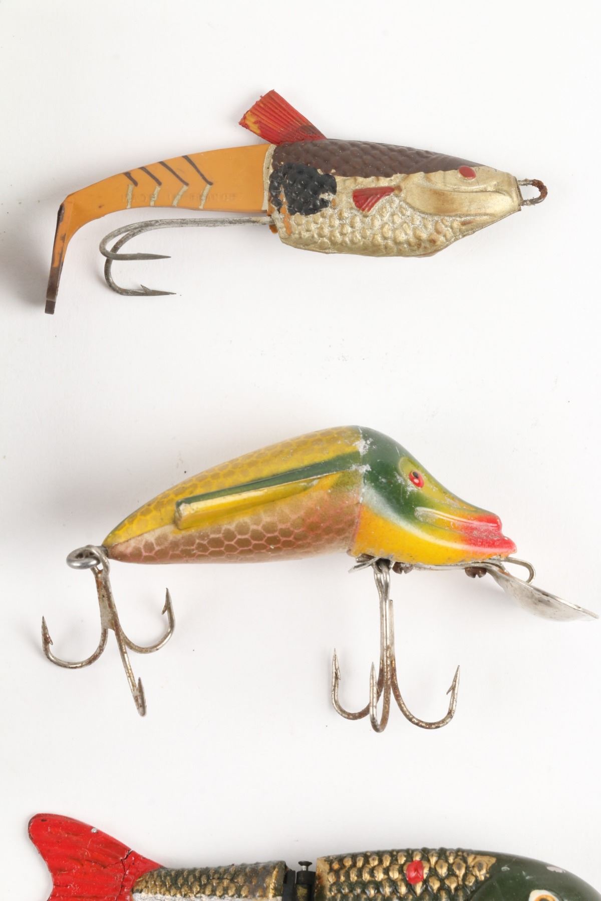 Fred Arbogast, L&S, Actual Lure, Plucky, and others as pictured, Unknown Origin. Material: Mixed. Quantity: 9. Grade: VG. 3" - 5". Est. $50-75.