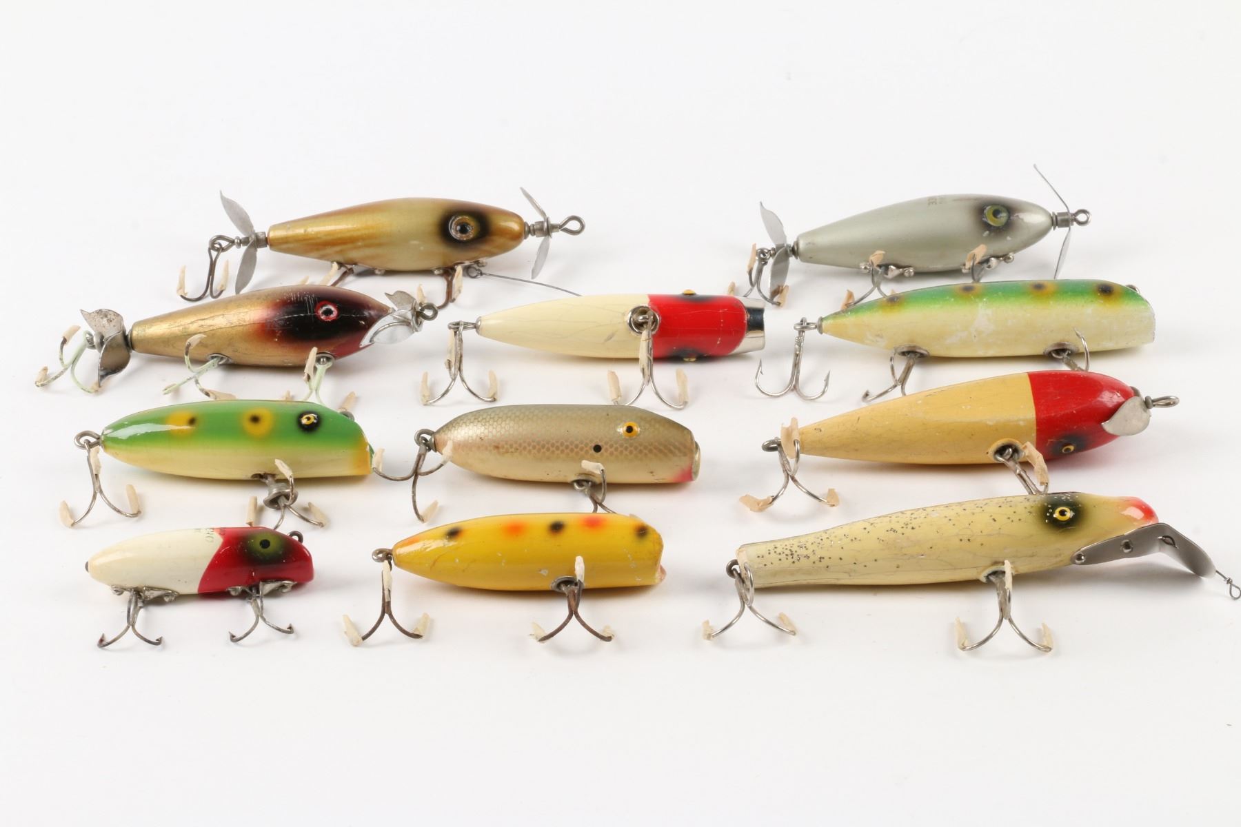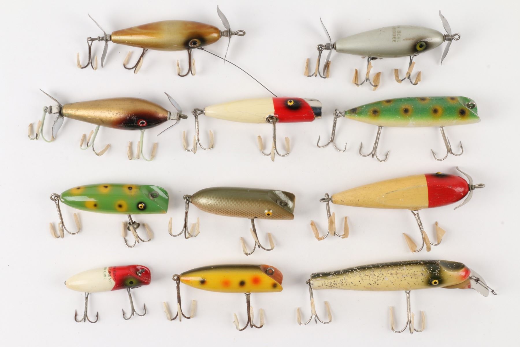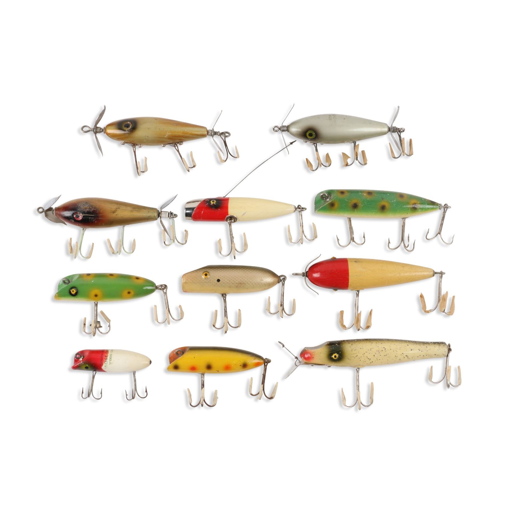 Neal, South Bend Bait Company, United States. Material: Wood. Quantity: 11. Grade: G. 2.5" - 4.5" each. Est. $100-125.