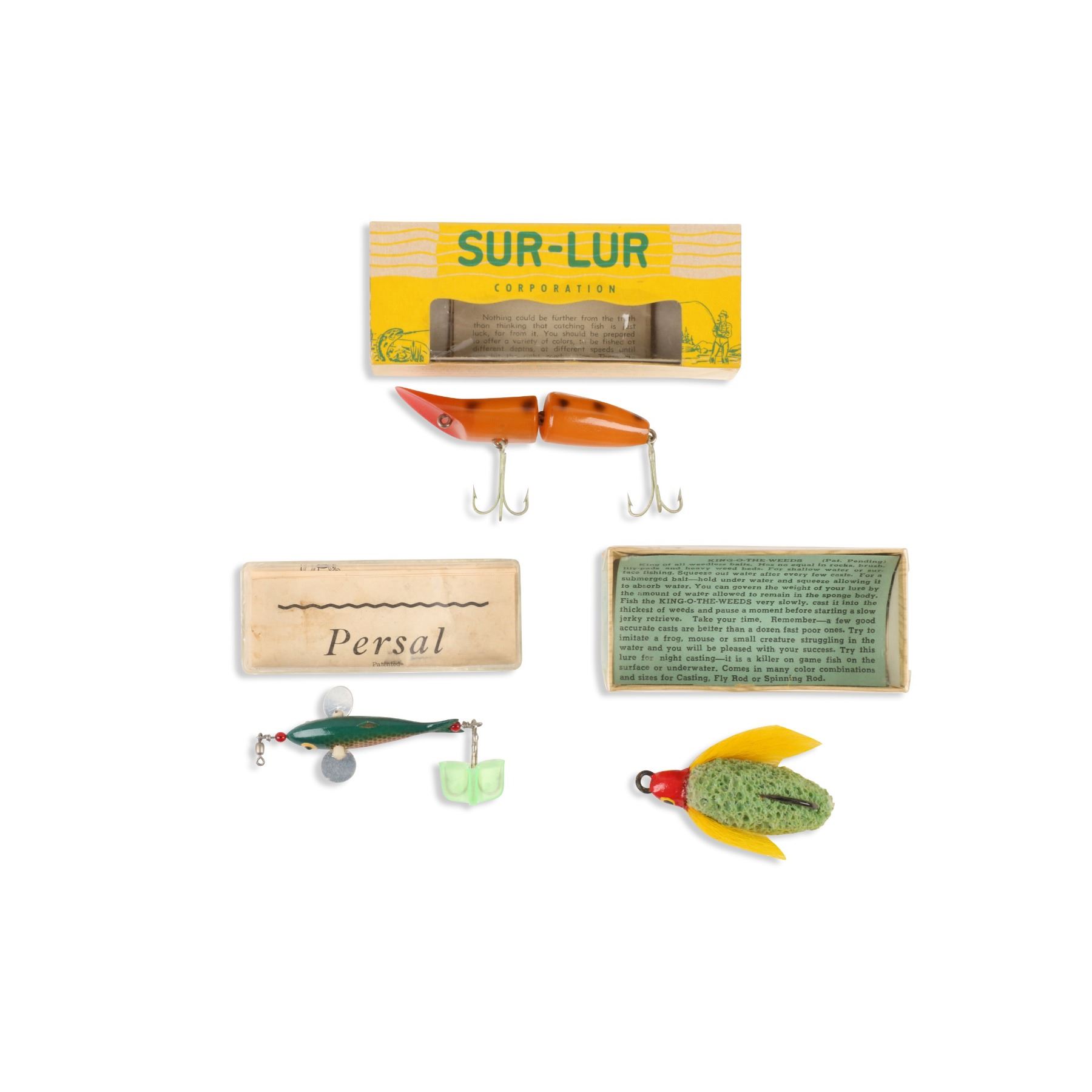 Sur-Lur, King-O-The-Weeds, Persal, United States. Boxed. Material: . Quantity: 3. Grade: VG+. 4" - 5" boxes. Est. $75-100.