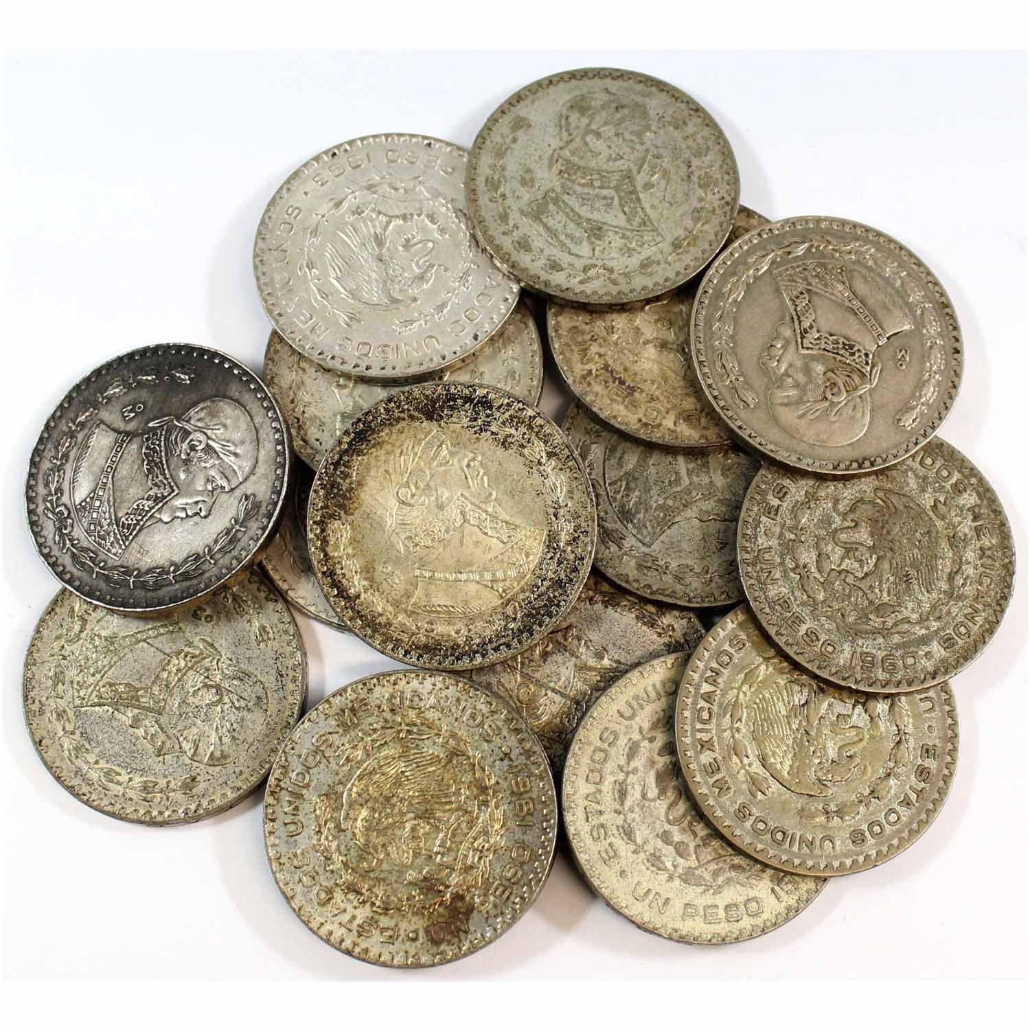 Mixed Lot of Mexico 1 pesos Silver coins dated between 1958-1967. 16pcs