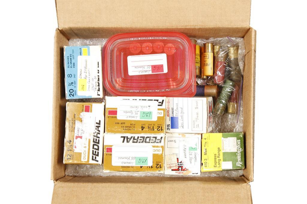 Miscellaneous loose rounds.Includes: 3 boxes - 12 ga Federal #4 shot 1 box - 20 ga Federal #8 shot 2 boxes - .410 Western Super X #5 shot 1 box - .410 3" Remington #4 shot1 pkg - 16 ga Sears Long Range #5 shot Miscellaneous loose rounds.