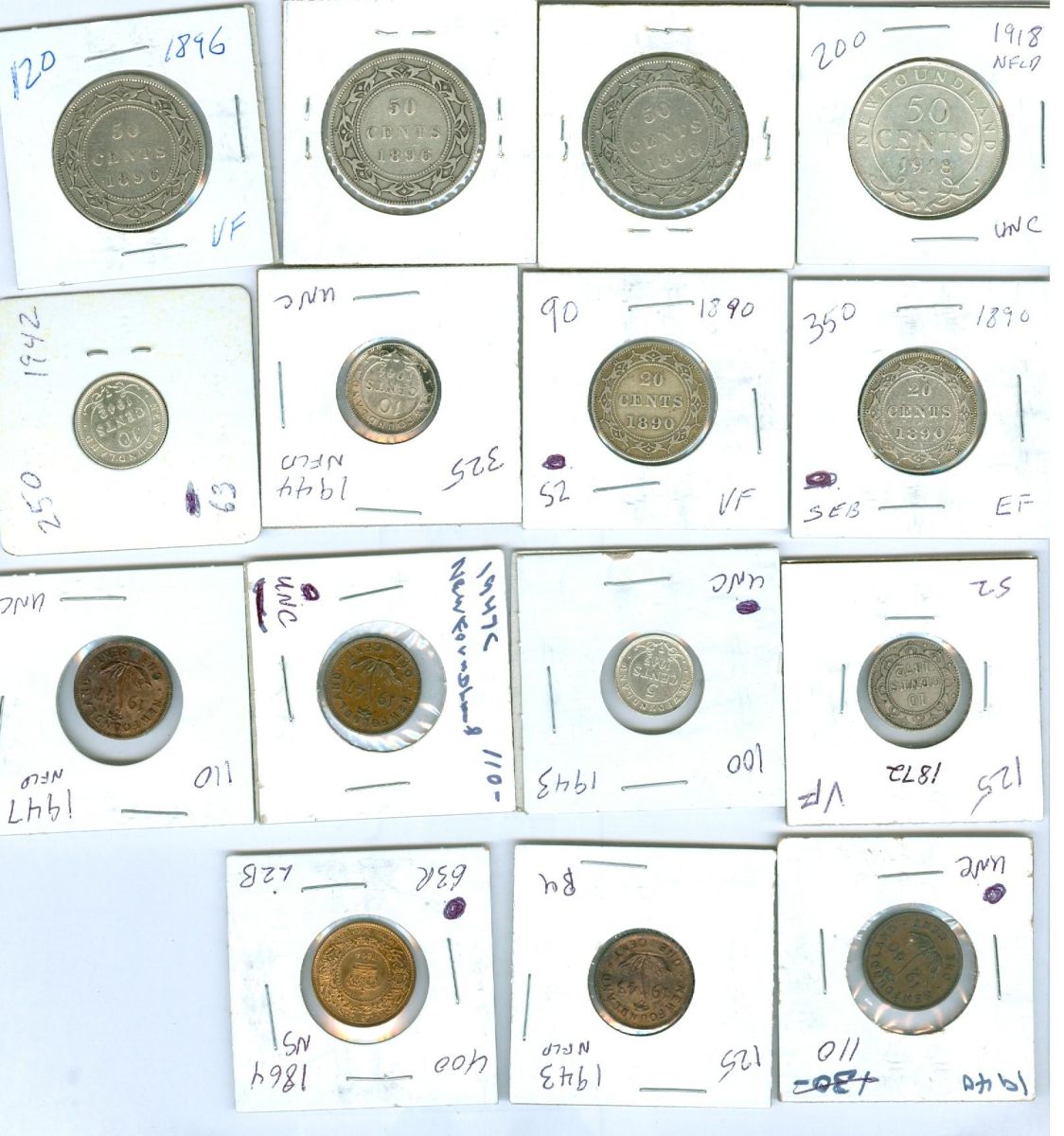 Mixed Lot of decimal Maritime coinage. Includes 1864 N.S. 1/2¢, Nfld 1940, 1943c, 1947c (2), 5¢ 1943c, 10¢ 1872H, 1942c, 1944c, 20¢ 1890 (2) and 50¢ 1896 (2), 1898 and 1918. Fine to AU. Should be viewed.