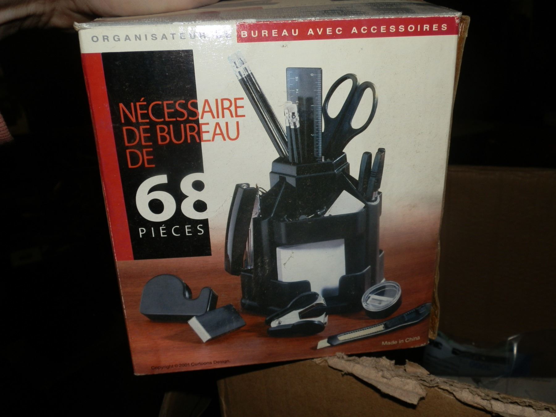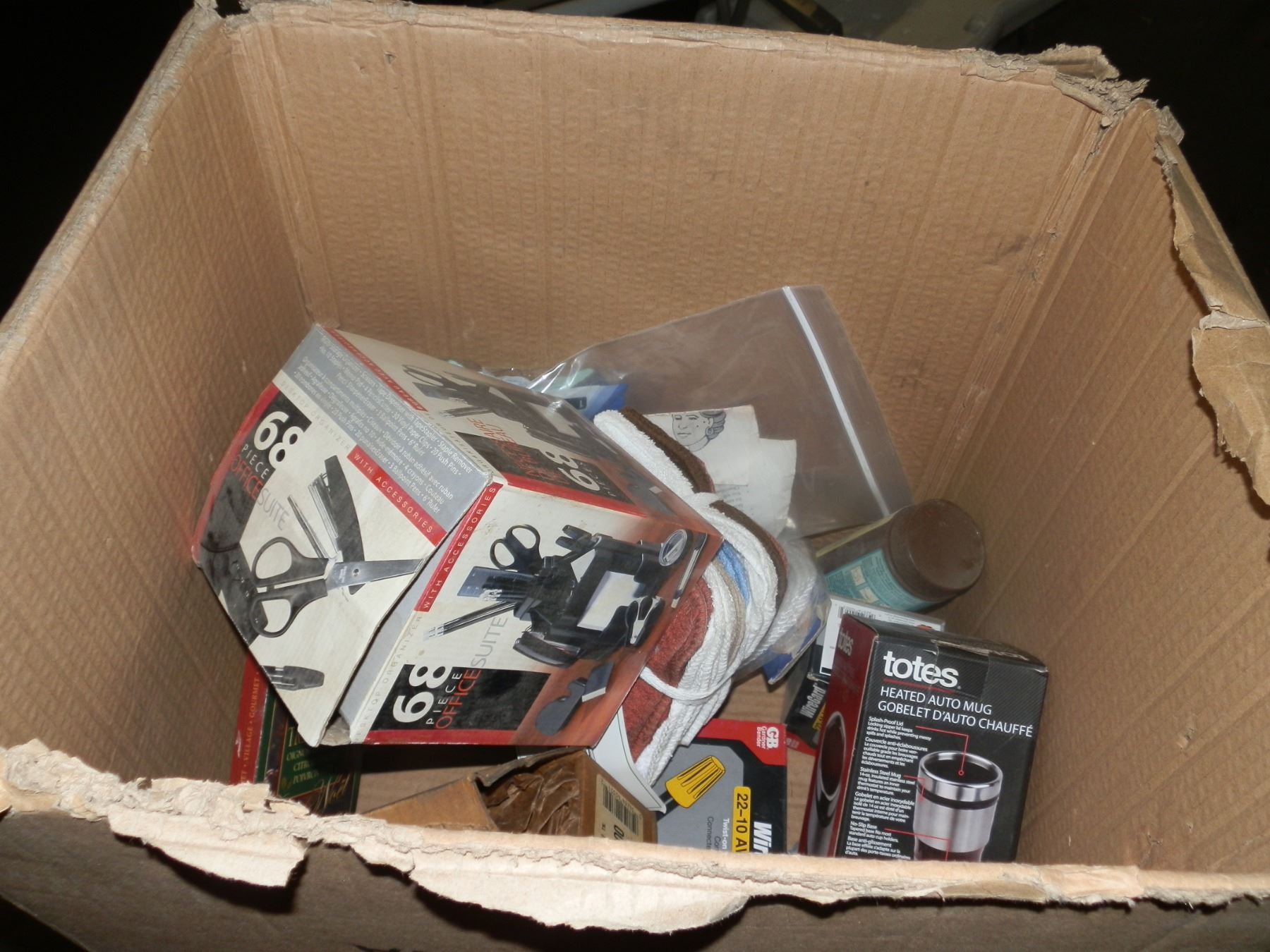 A little bit of everything in this lot, dish rags, Heated car mug, desk top organizer vacuum bags, insulated cooler bag, fits a 6 pack of beer... and more all for one money.. sold as is
