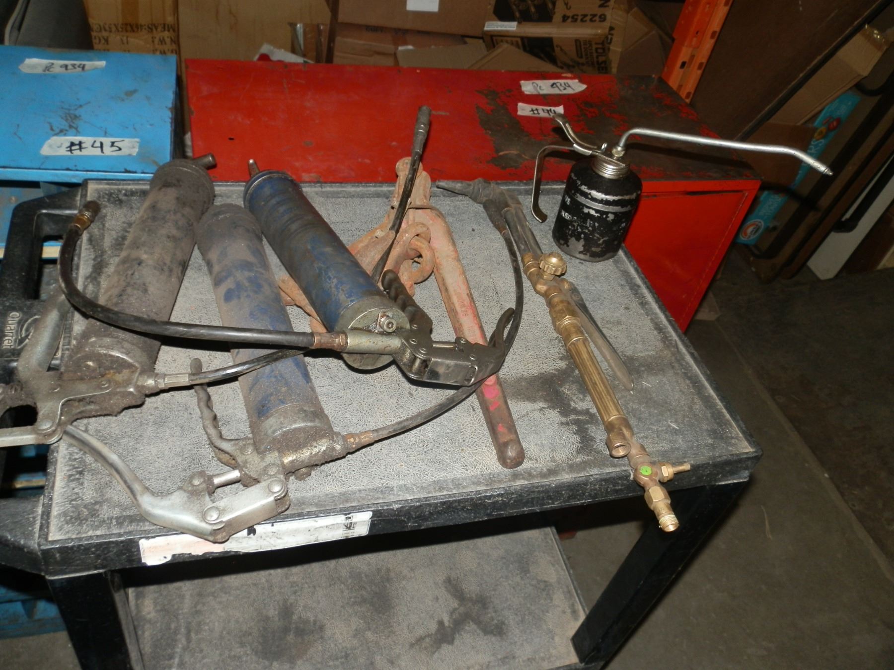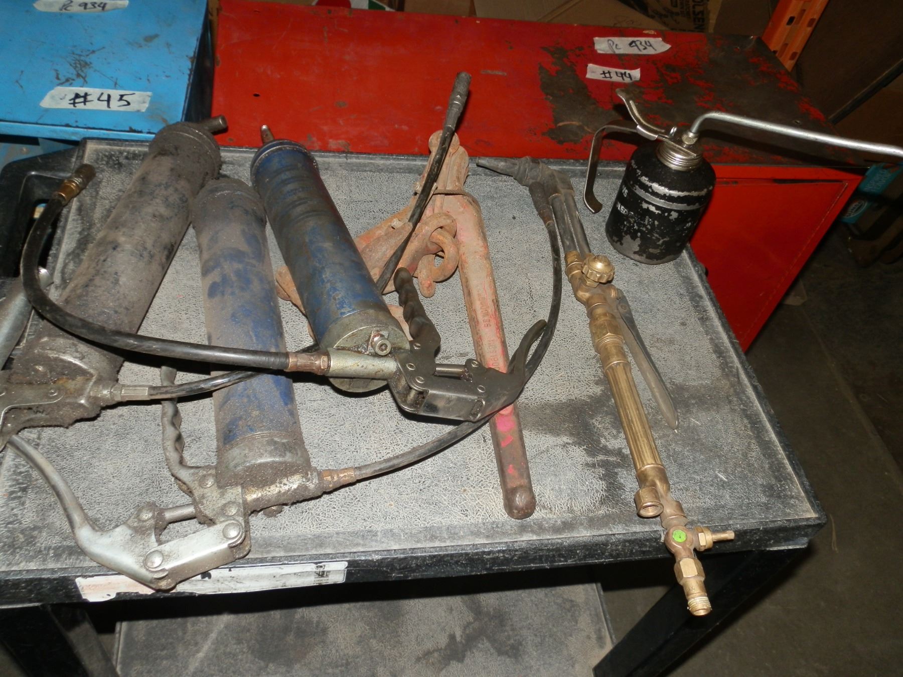 you get 3 grease guns, 1 oil can, 1 cutting torch, 1 come along...used