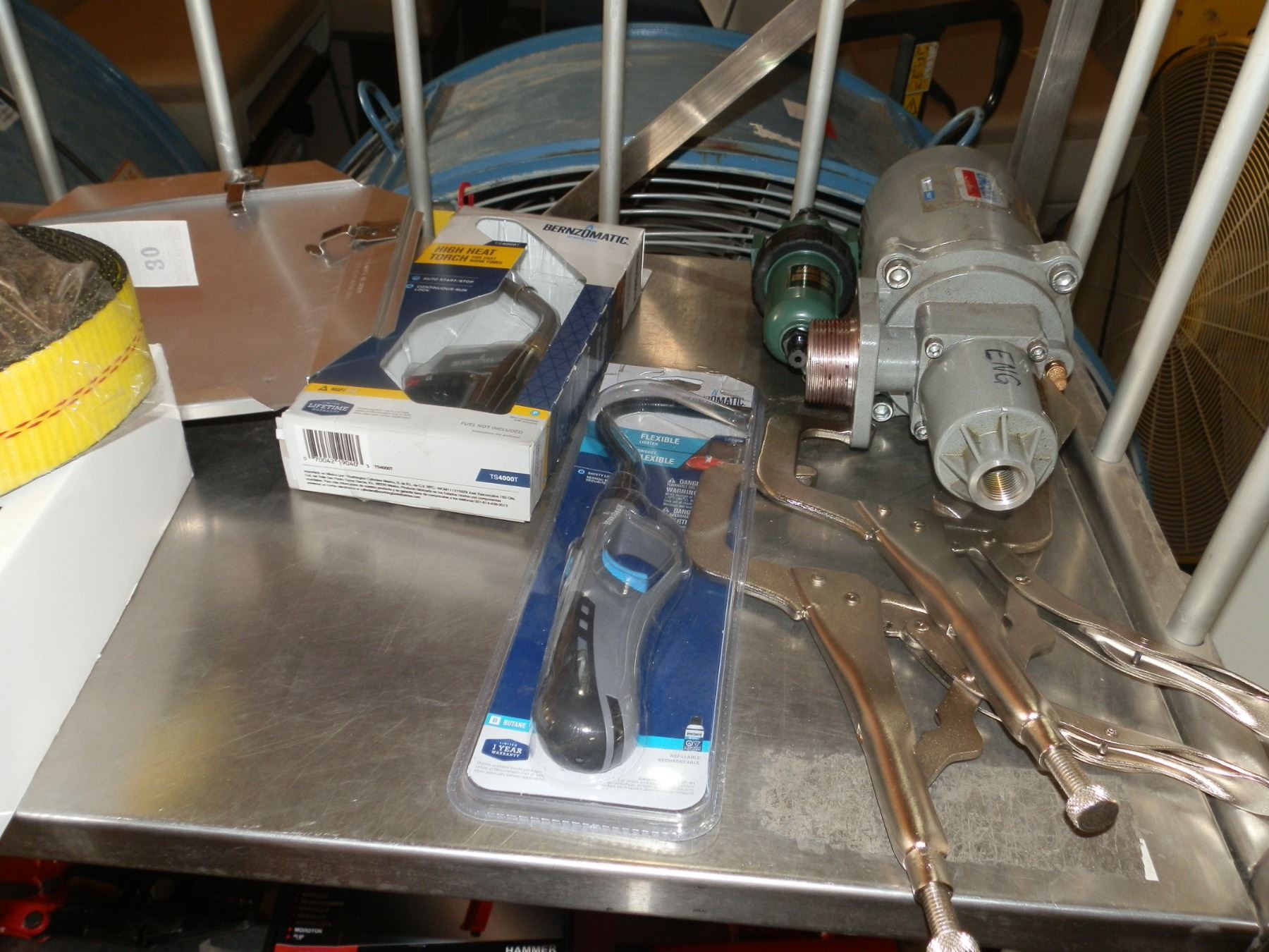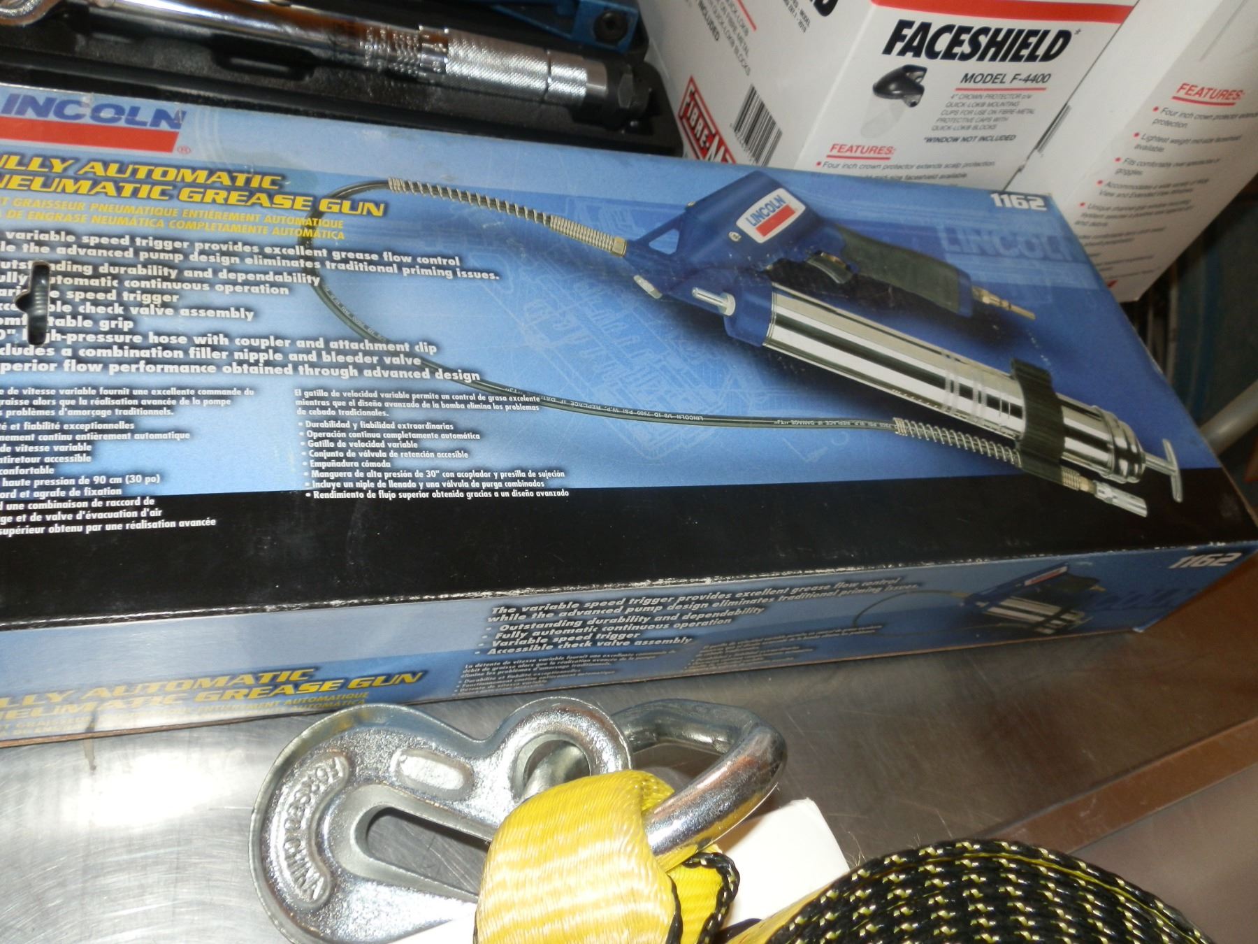 you get the whole shelf for one money, fuel pump, clamps, tire strap, grease gun, riveter, torque wrench, half mask, full face sheilds, ear plugs, Note these items are untested condition unknown....