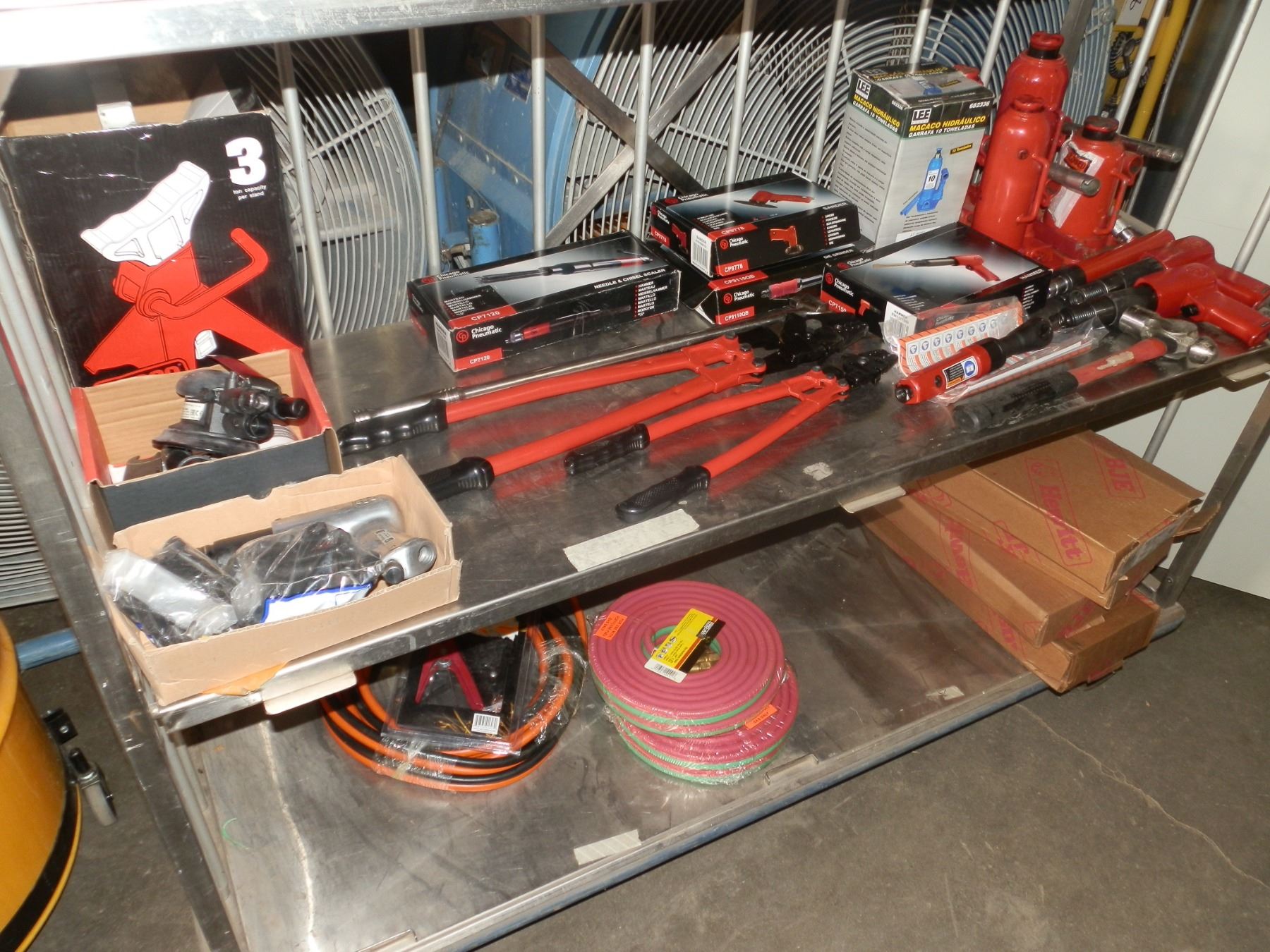 you get the whole shelf for one money, bottle jacks, crimper tools, jack stand, air tools.. Note these items are untested condition unknown....