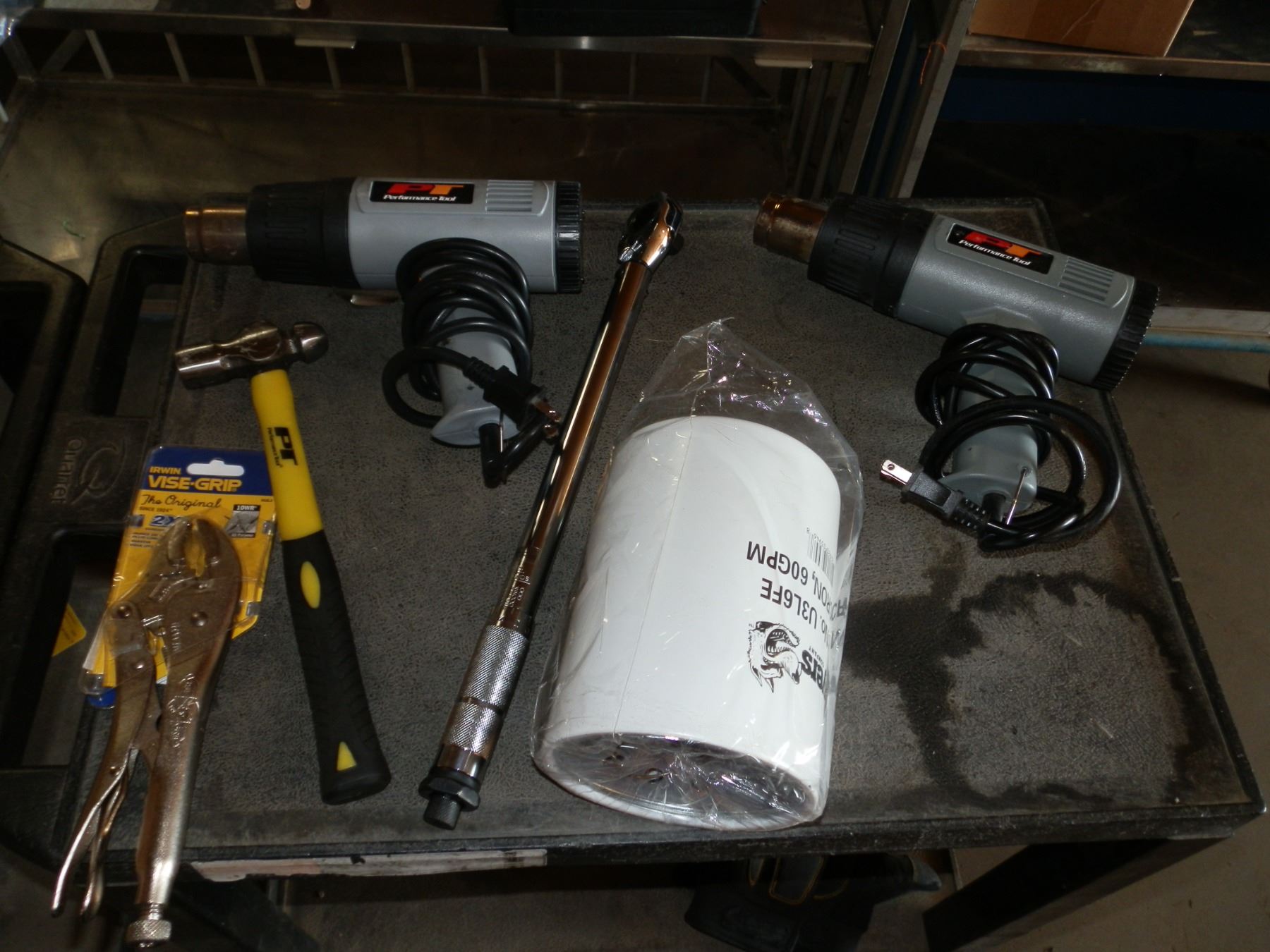 you get 2 heat guns,(not working) could be an easy fix, mallet, oil filter, hatchet, tail pipe expander ,hammer, vise grips, you get it all for one money....