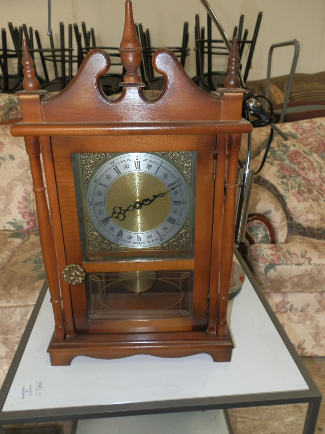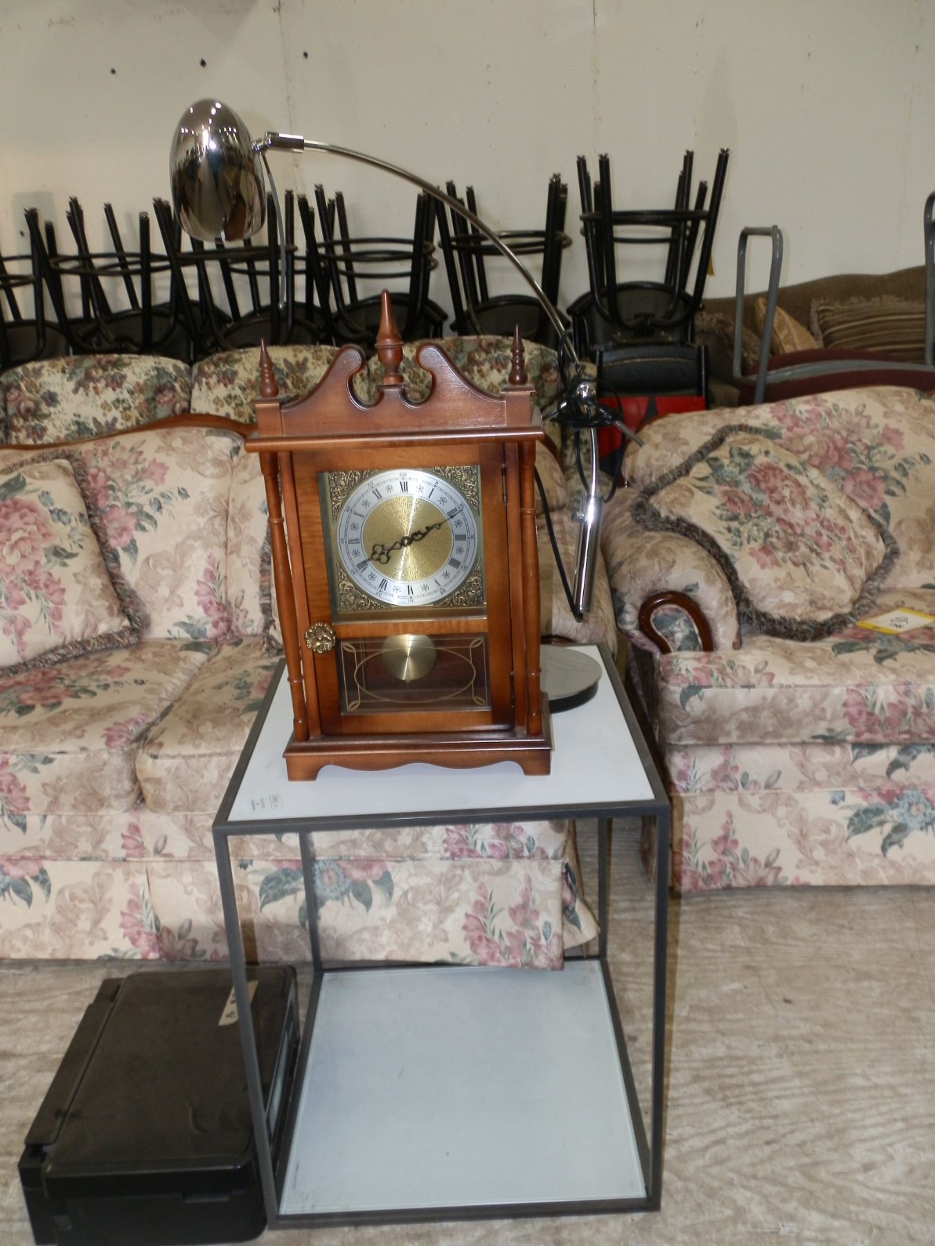 Mixed Lot, you get a lamp, clock, and a white glass top end table, all in good condition....used
