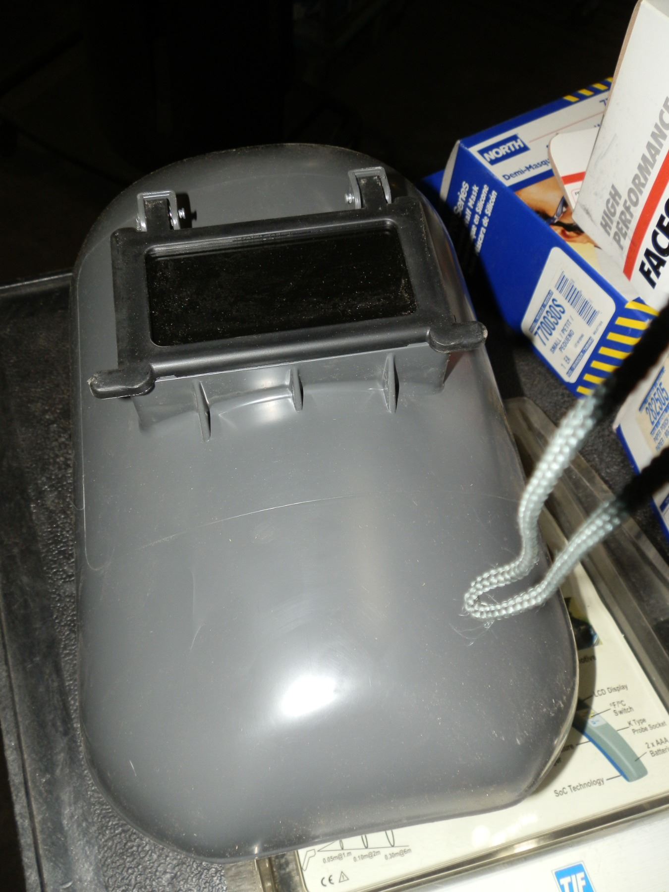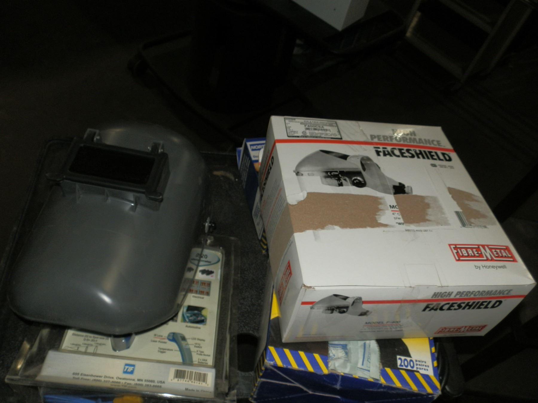 you get it all for one money, welding helmet, face shield, box of ear plugs, silicone half mask, size small, and a IR Thermometer...New/Used