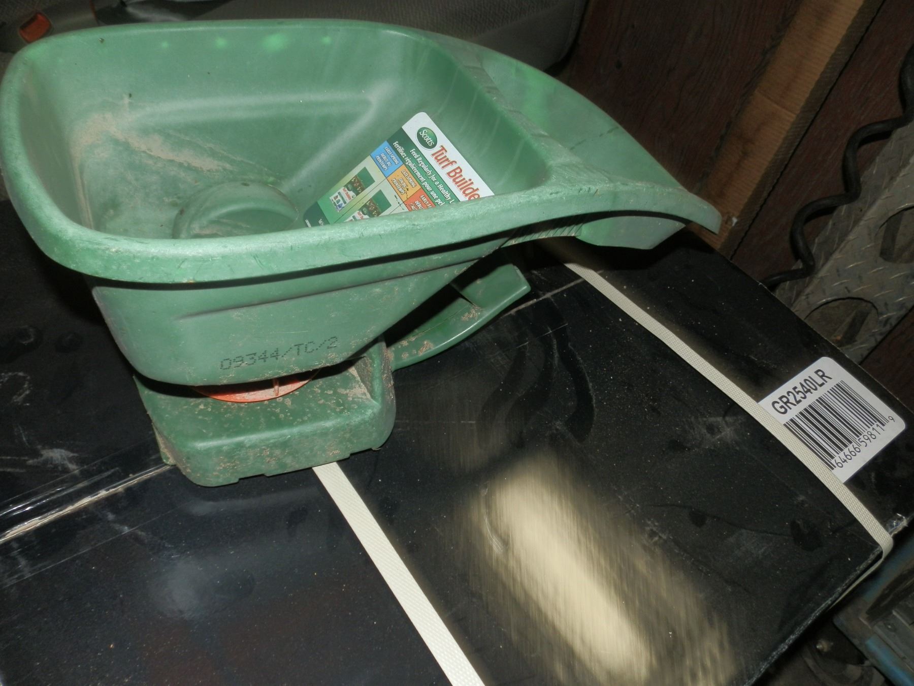 you get it all for one money, 1 van bench seat and 2 lawn seeders, one seeder has a crack as seen in the photos...used