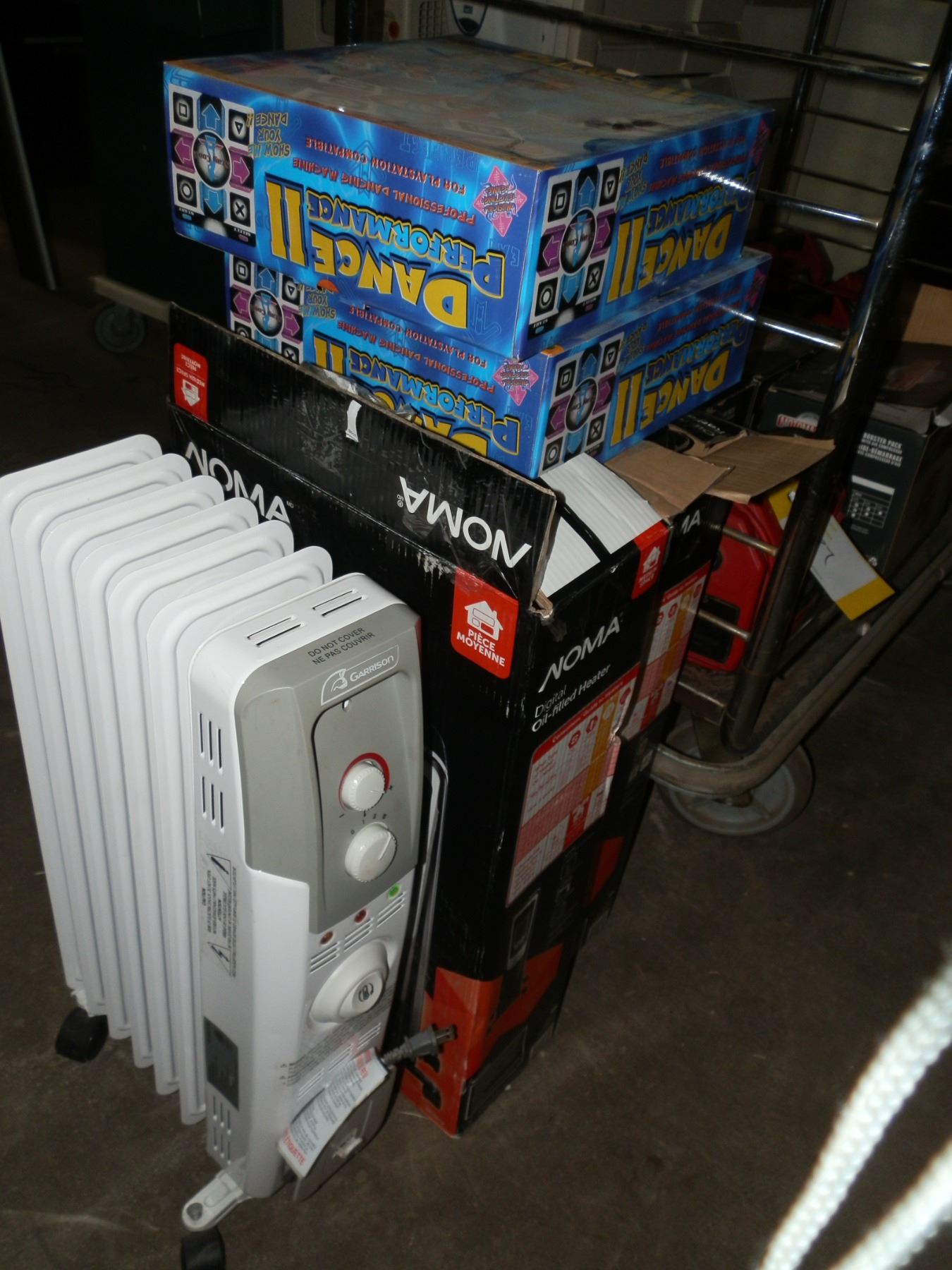 you get it all for one money, 4 dance pads for the ps1, and 3 heaters, condition unknown, untested...used