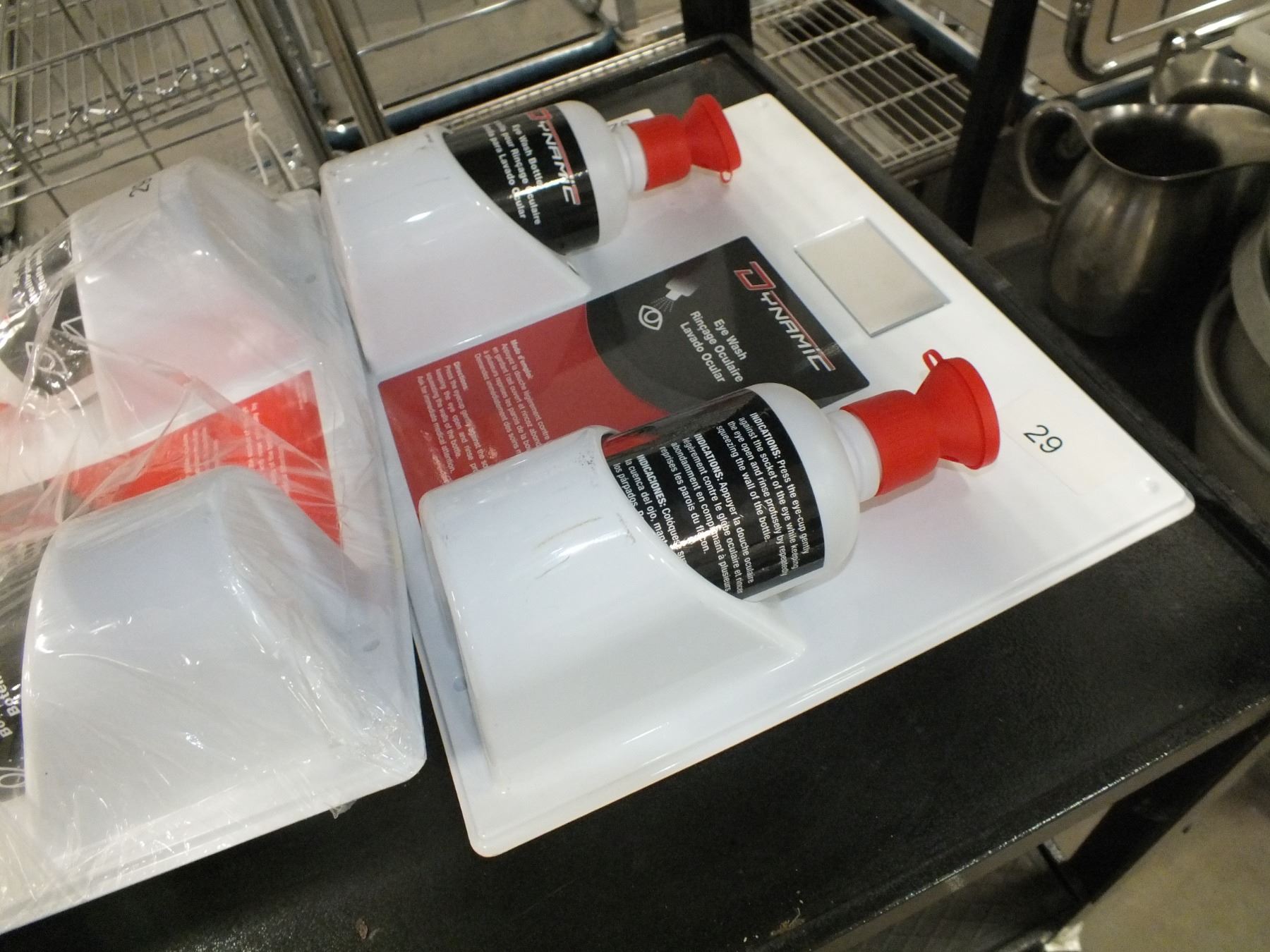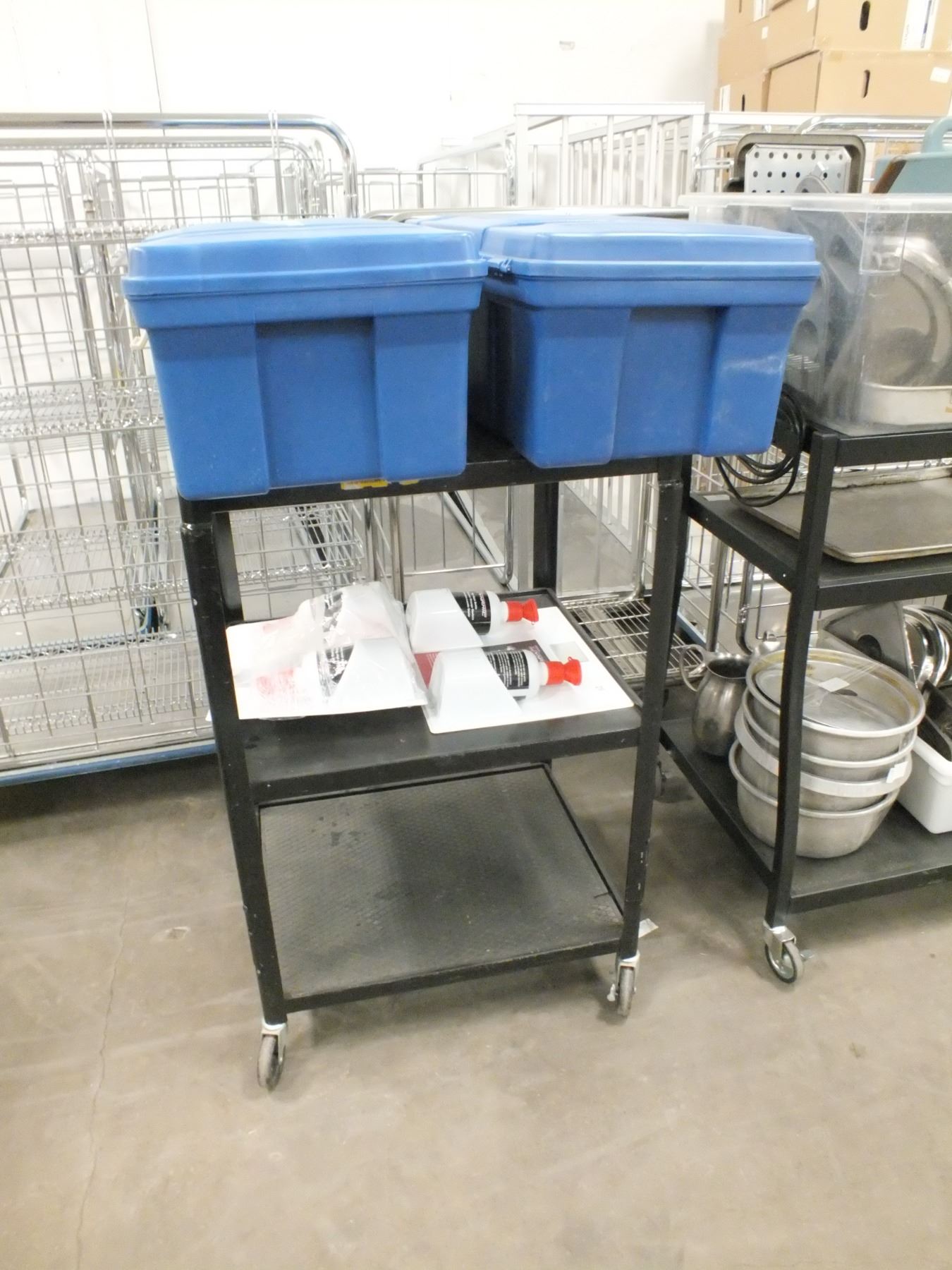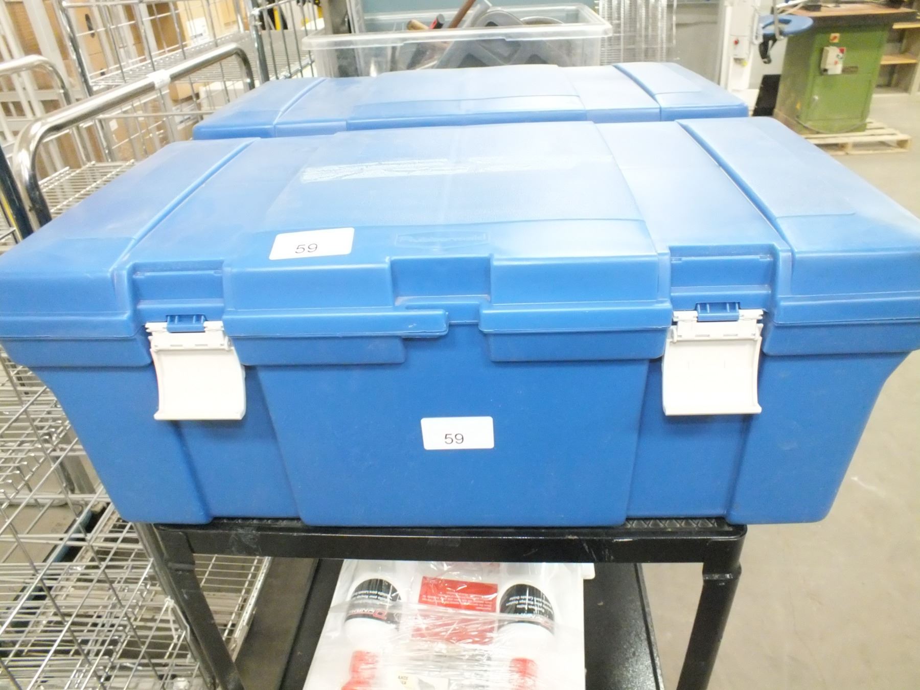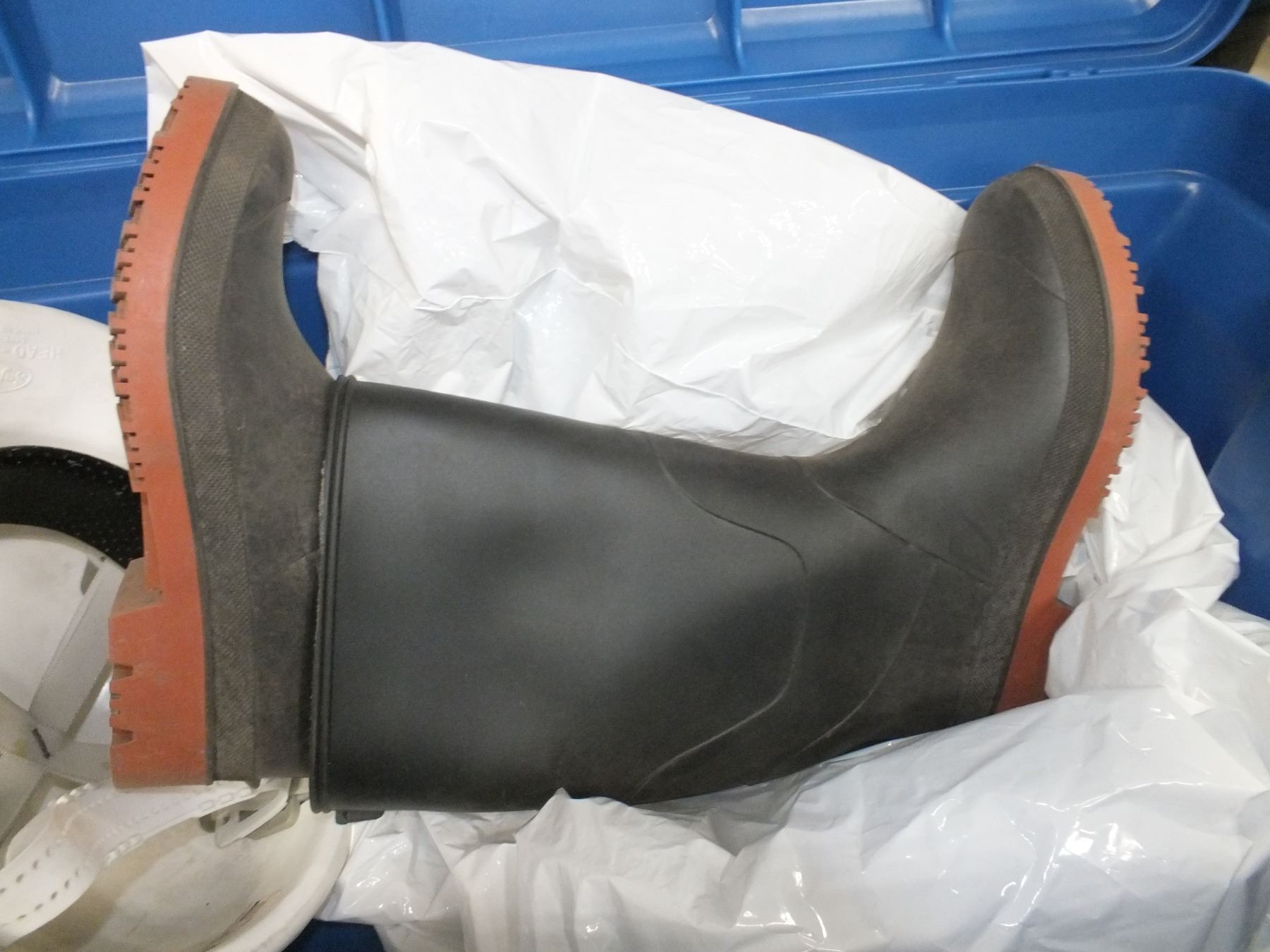 you get it all for one money, black cart on wheels, 2 eye wash stations, 2 Rubbermaid storage bins, 2 sets of rubber gloves, size 12 rubber boots, size 8 rubber boots, and 1 hard hat....Used