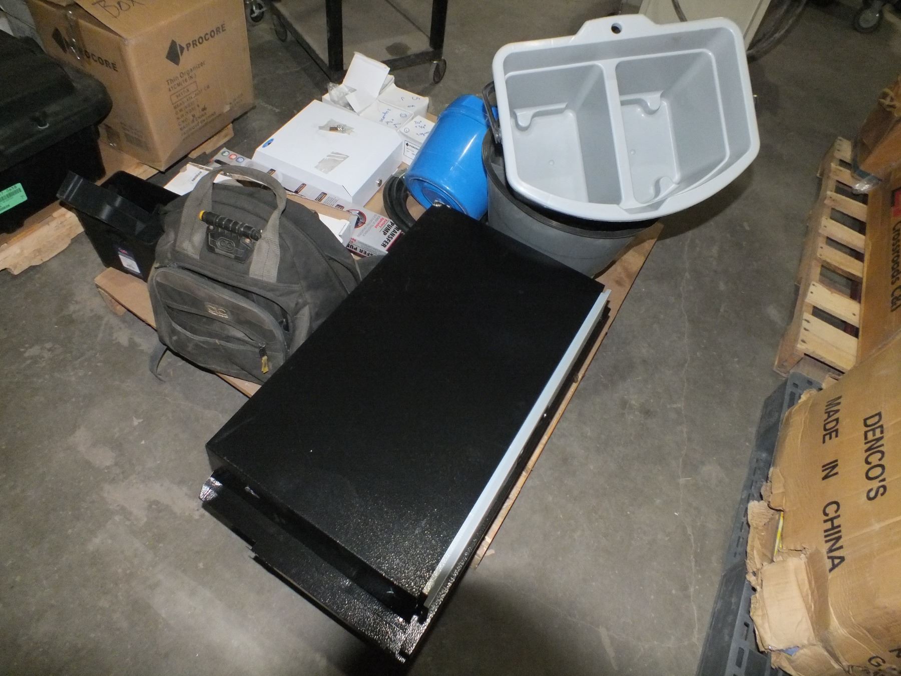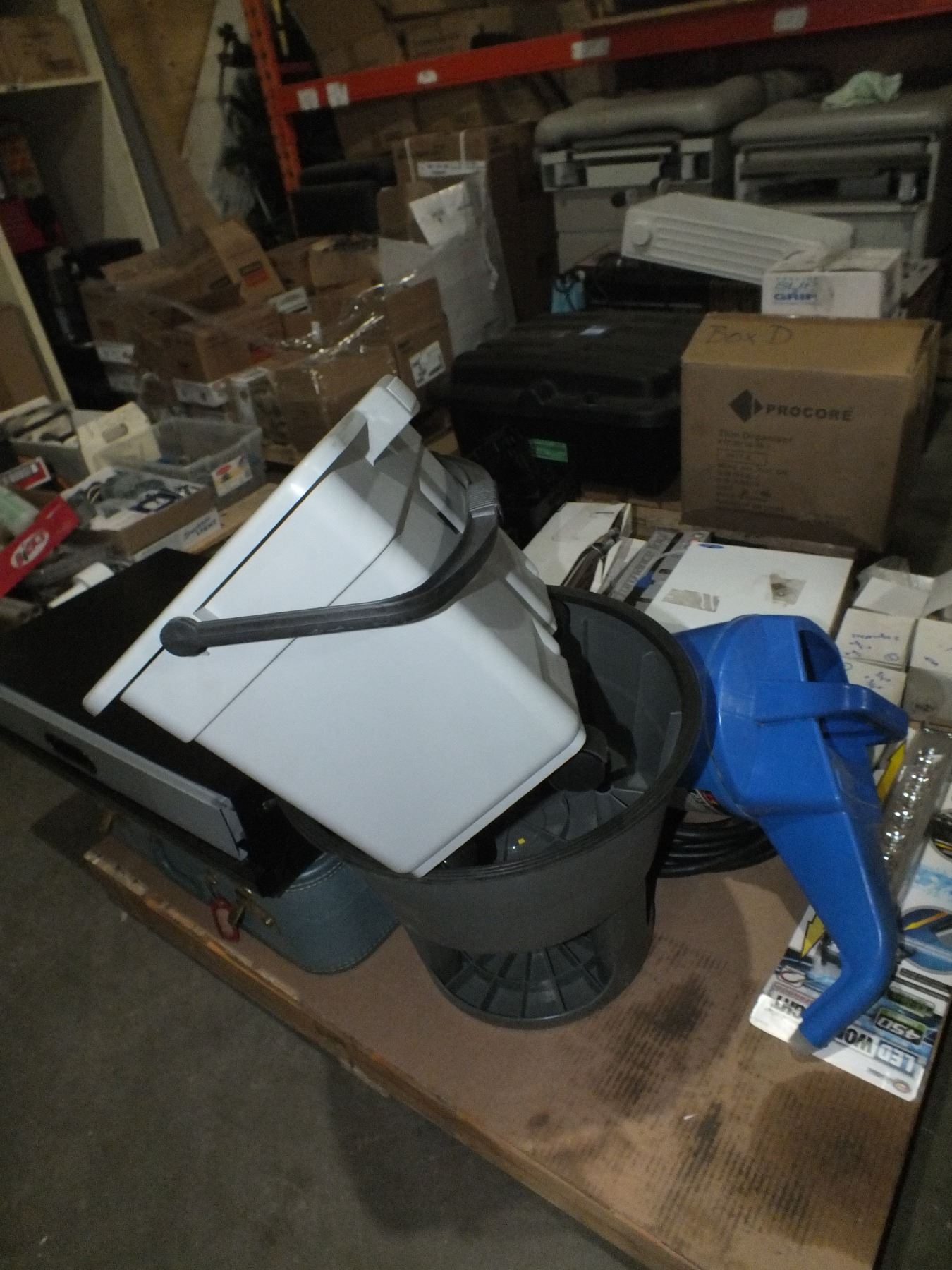 you get it all for one money, oil jug, job light, step stool, back pack, suit case, cleaning bucket, battery case, small metal box, and a transfer pump, New/used
