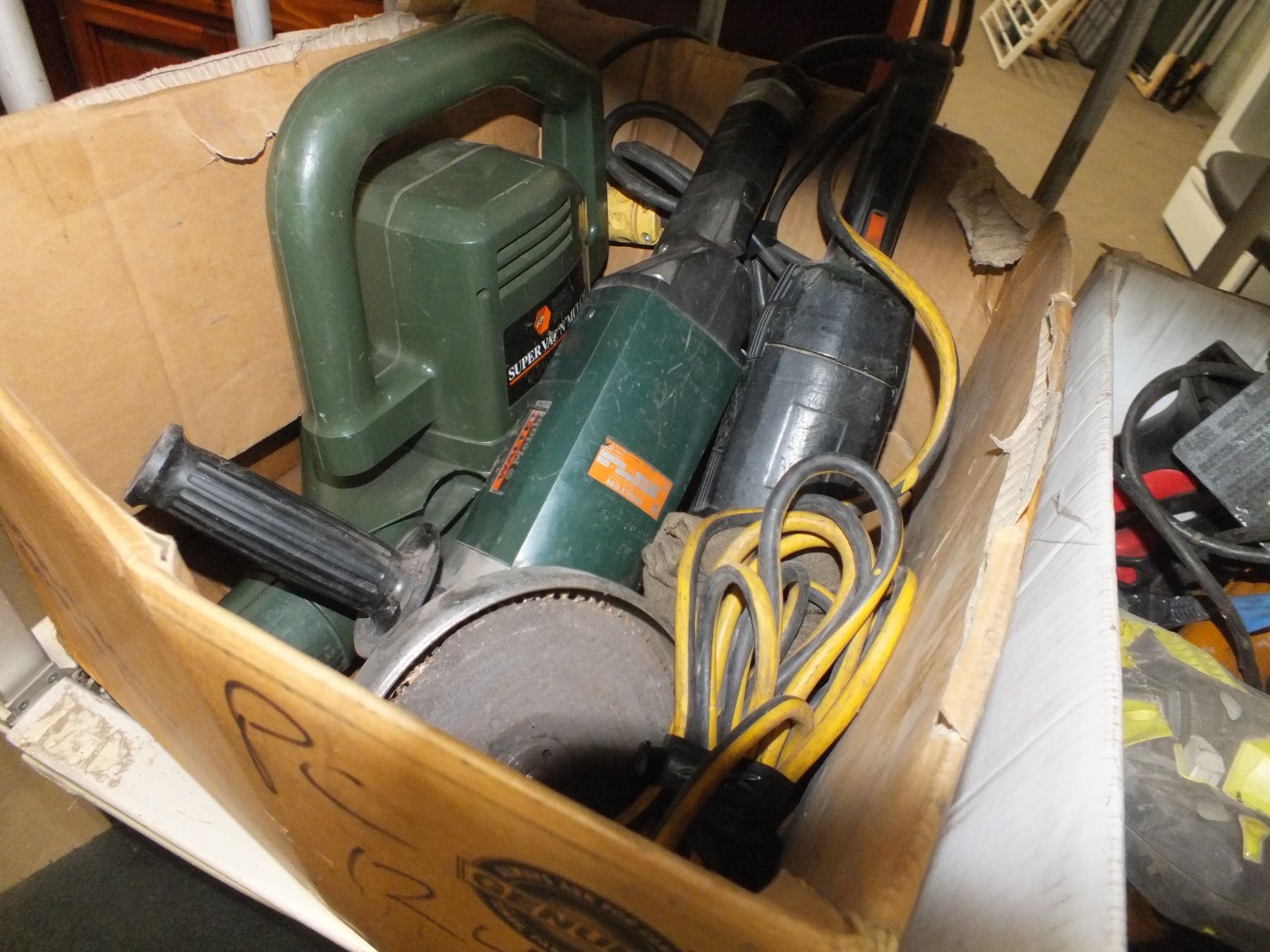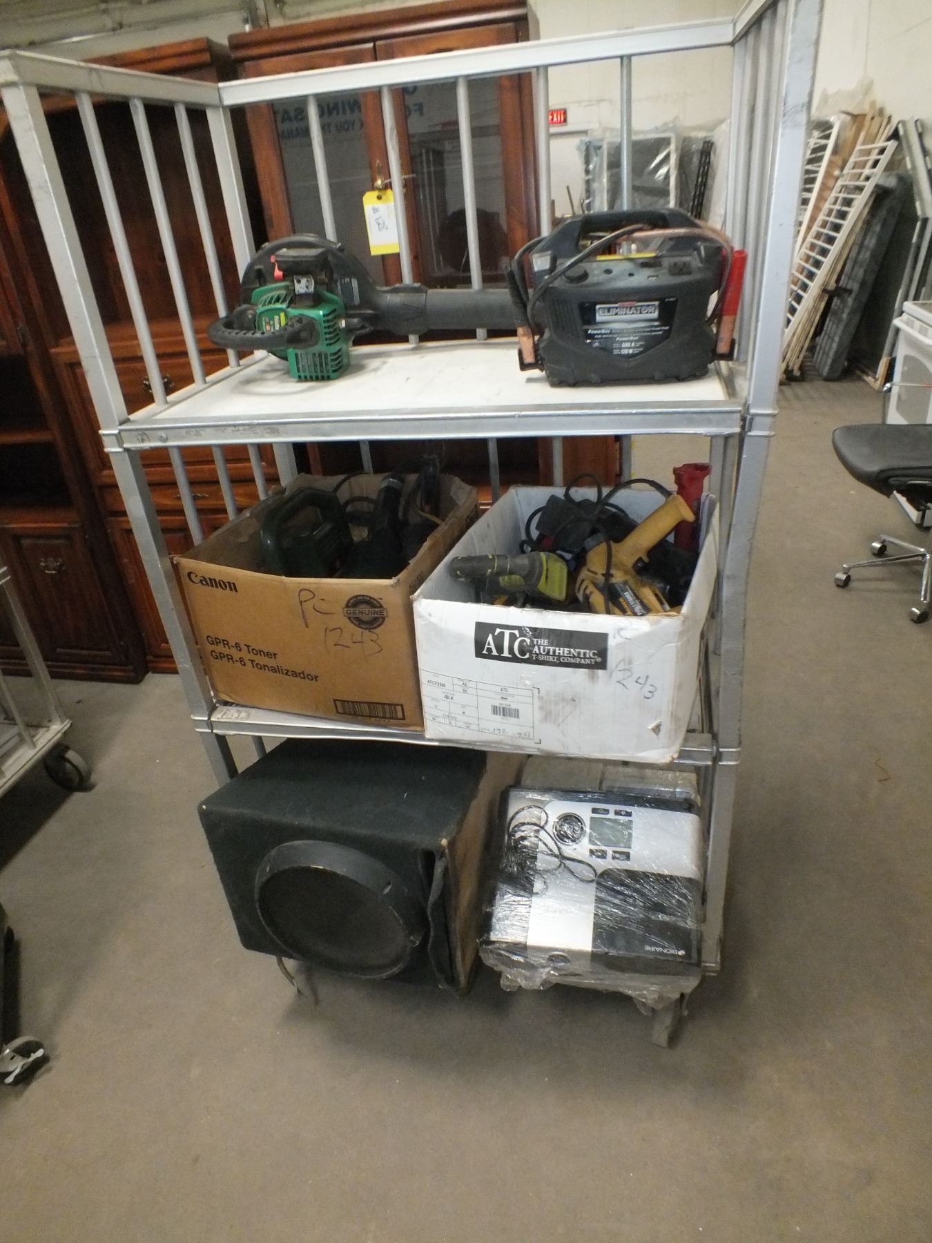 you get it all for one money, booster pack, leaf blower, 2 boxes of power tools, 1 sub for a car, cash register, humidifier, condition unknown.... used