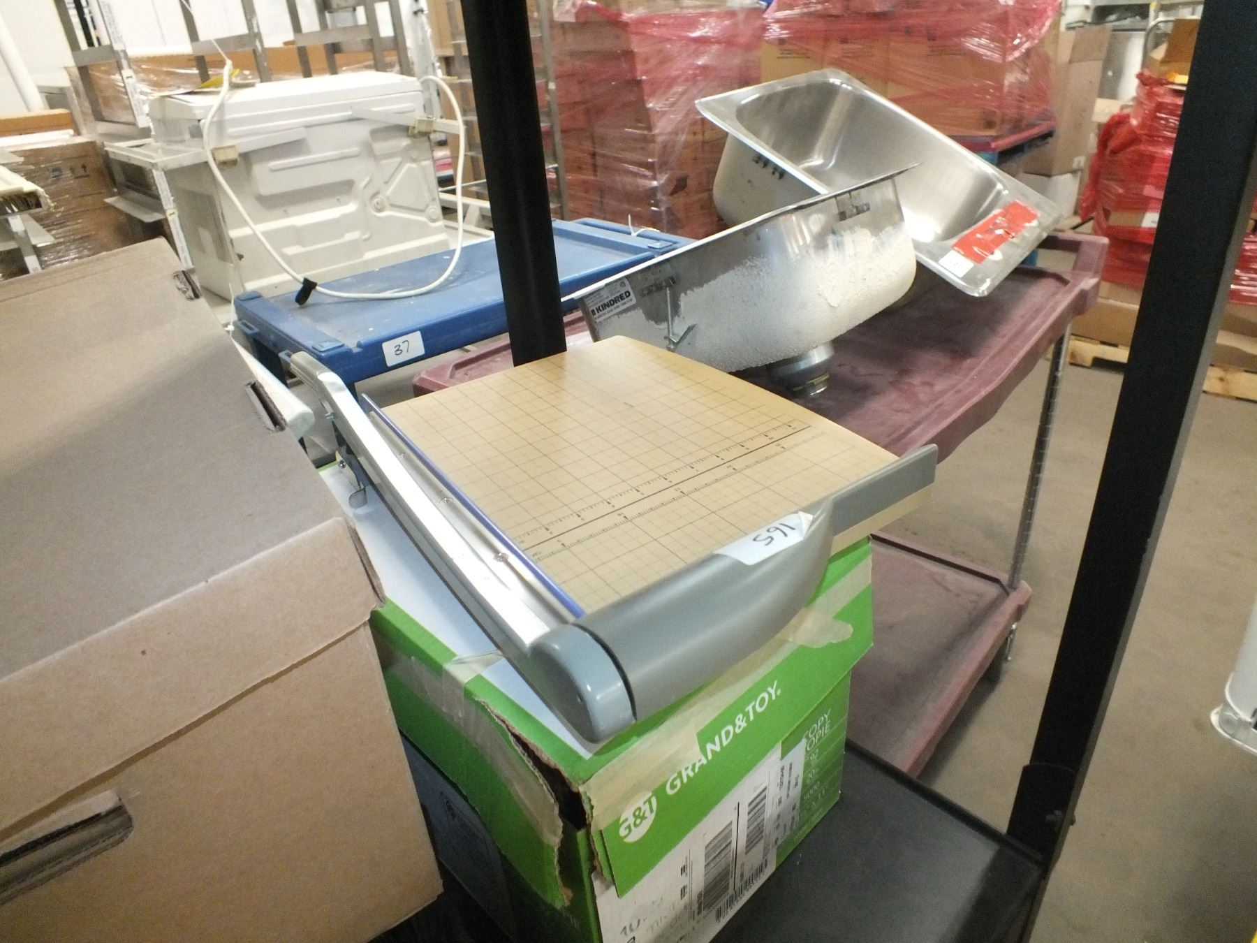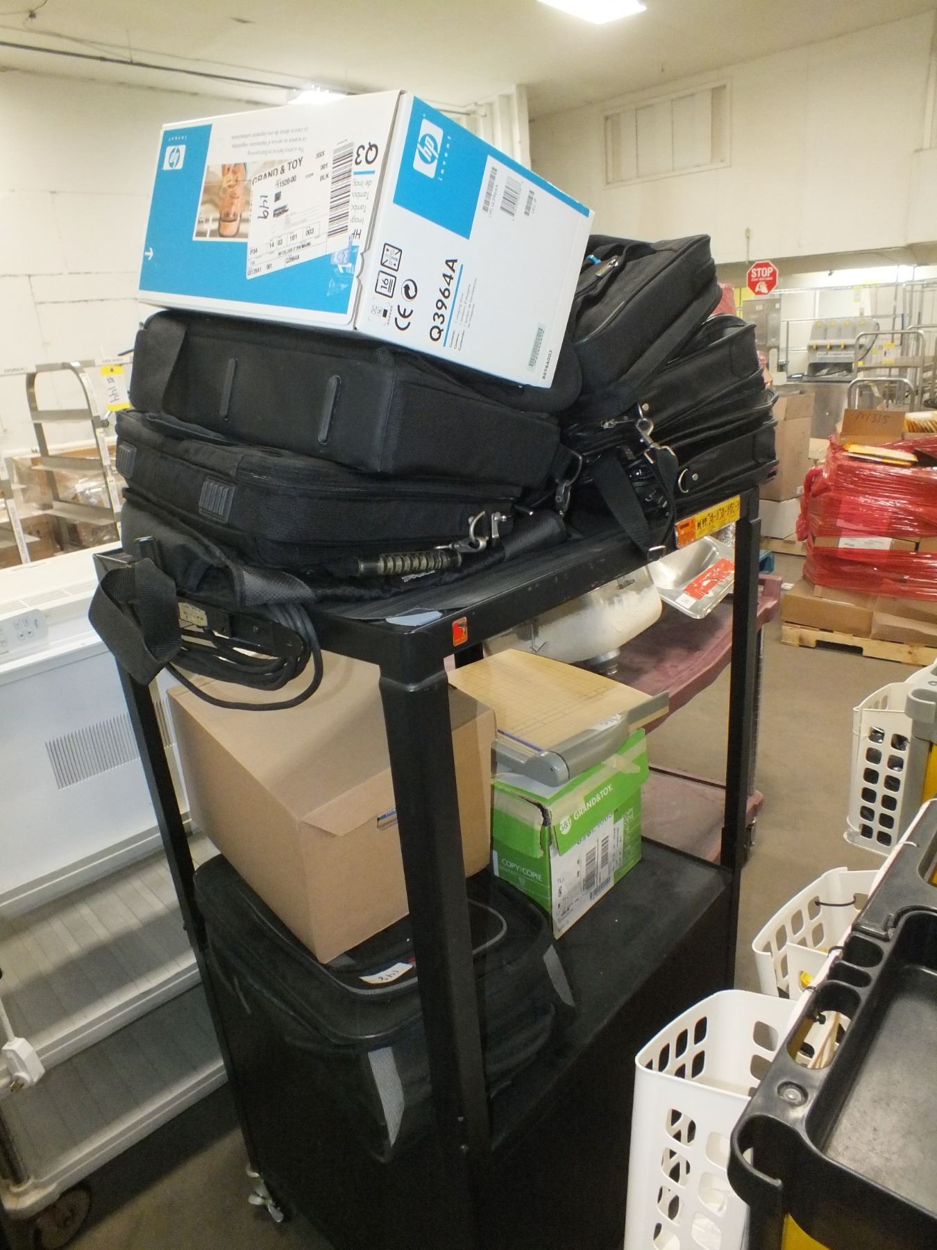 you get it all for one money, black cart on wheels, laptop bags, paper cutter and toner cartridges...used