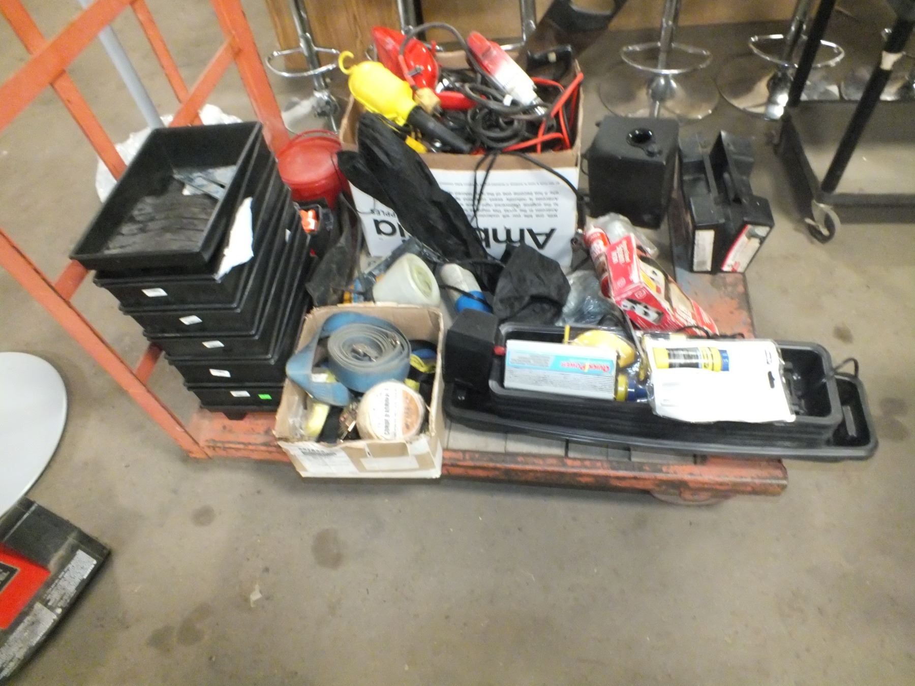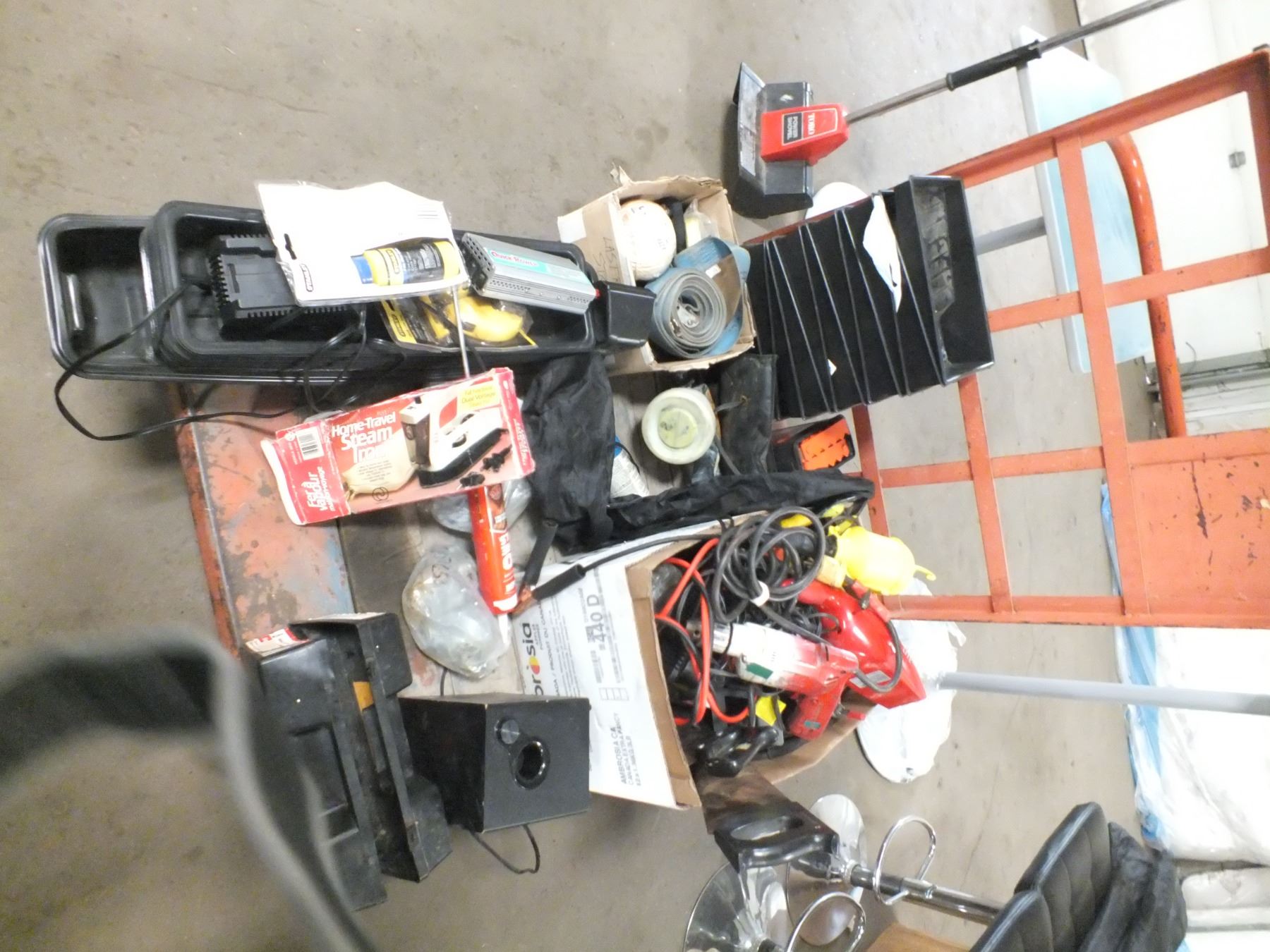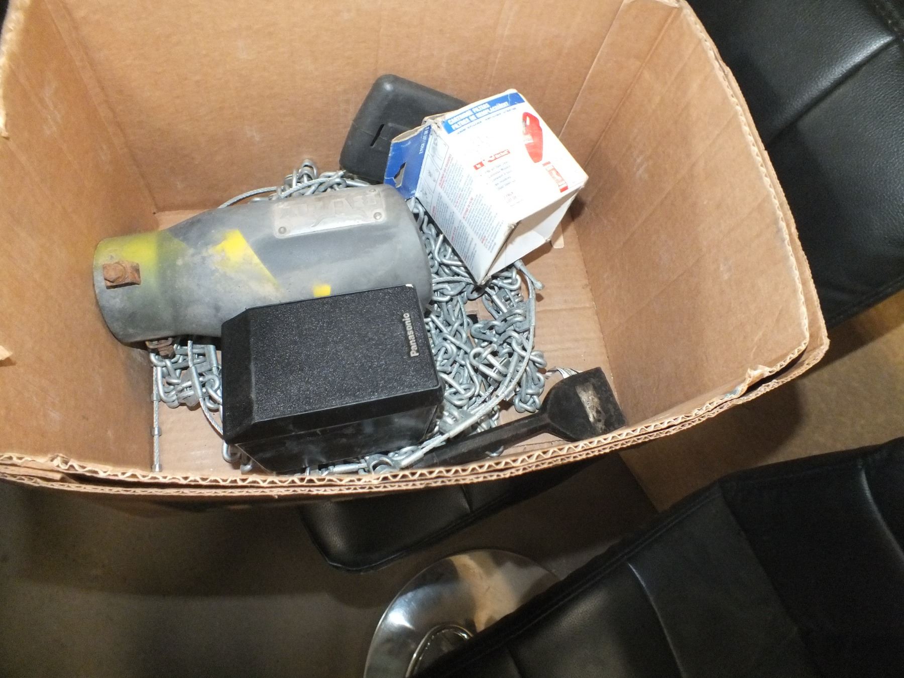 you get it all for one money, drill, paint containers, job lights, saws, speakers, sander, battery warmer, chaulk line, tire chains, windsheild covers, nuts/ bolts, booster cables and more...used
