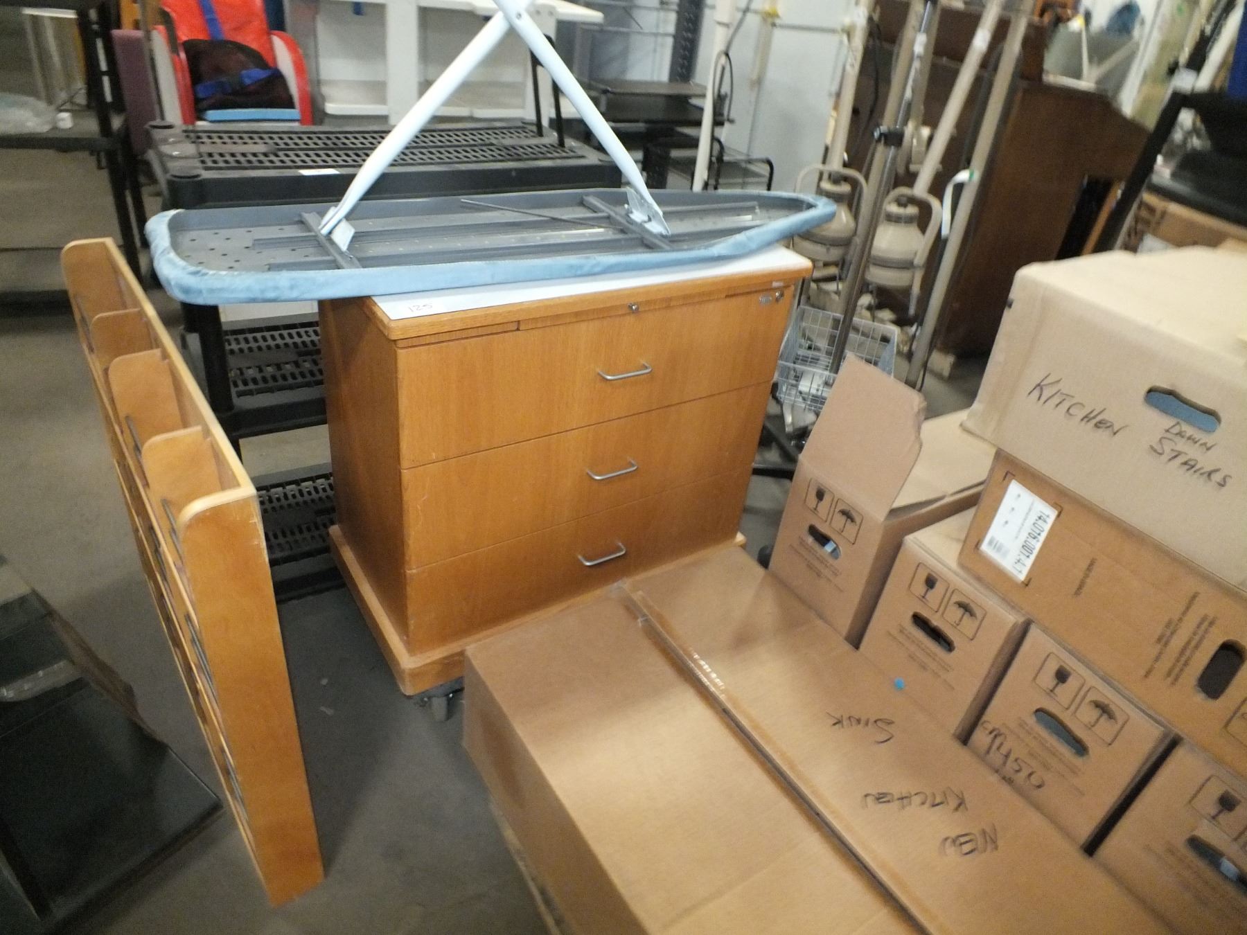 you get it all for one money, high chair, tv stand, plastic shelf, iron board, pamflet holder, wooden storage cabinet...used