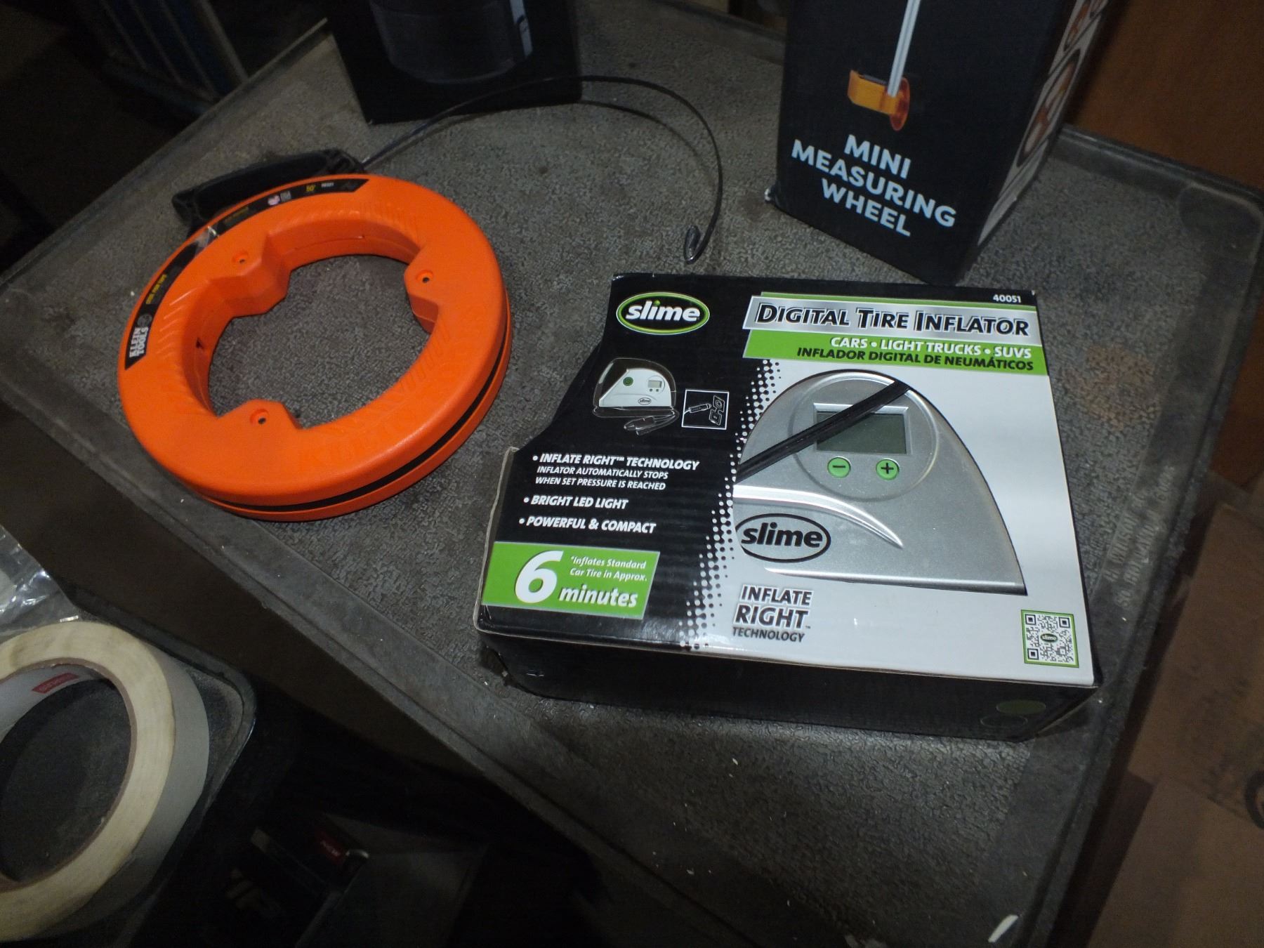 you get it all for one money, fish tape, tire inflator, mini measuring wheel, and a insect trap...like new