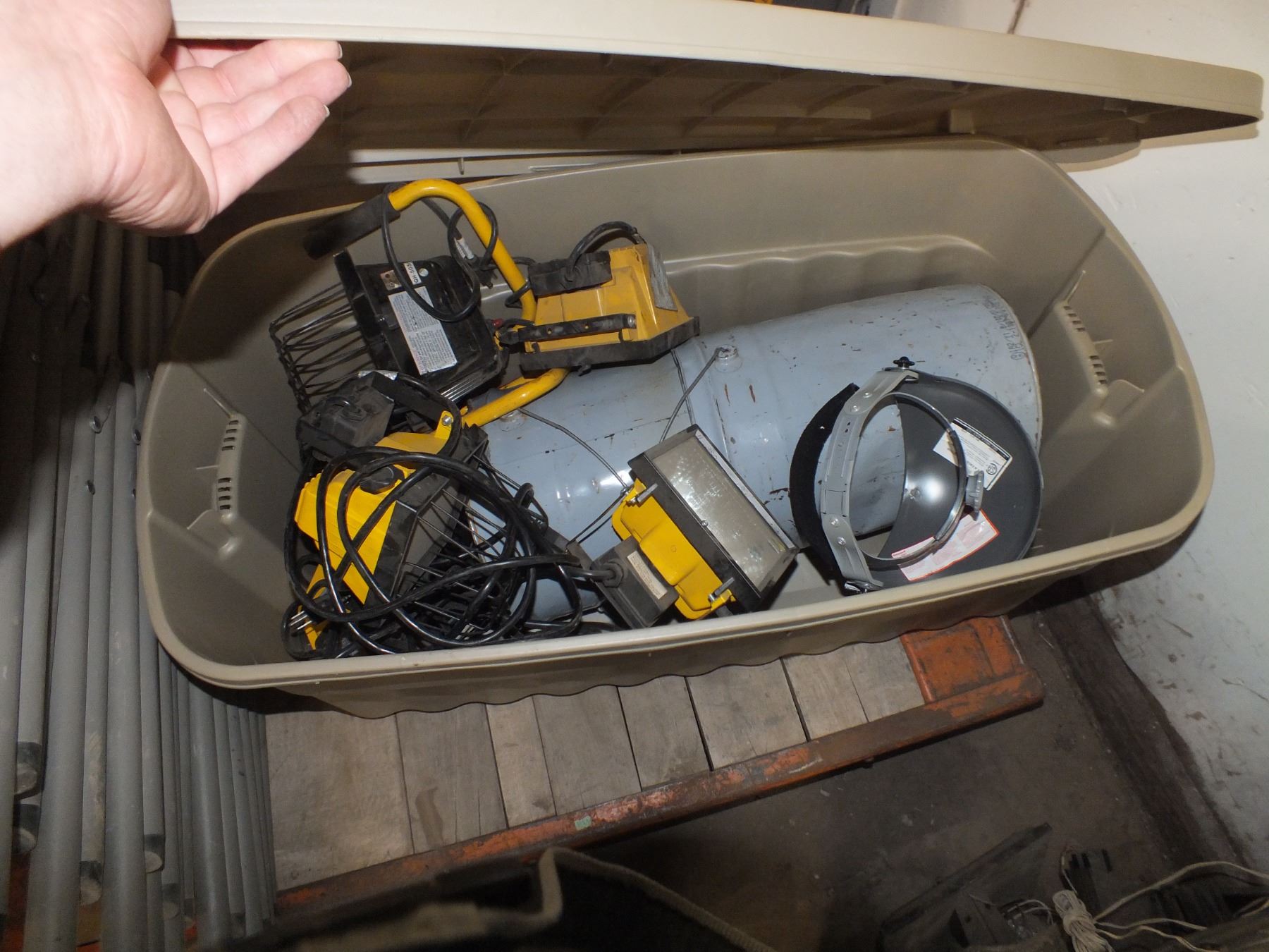 you get it all for one money, 13 folding chairs, small job lights, wheel barrow parts and pails....used