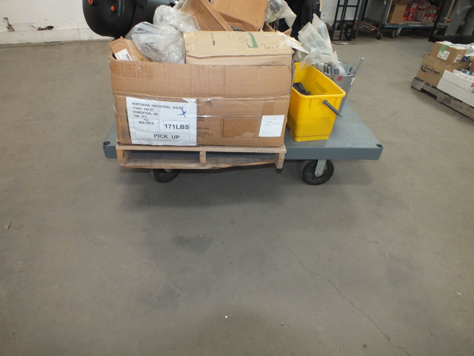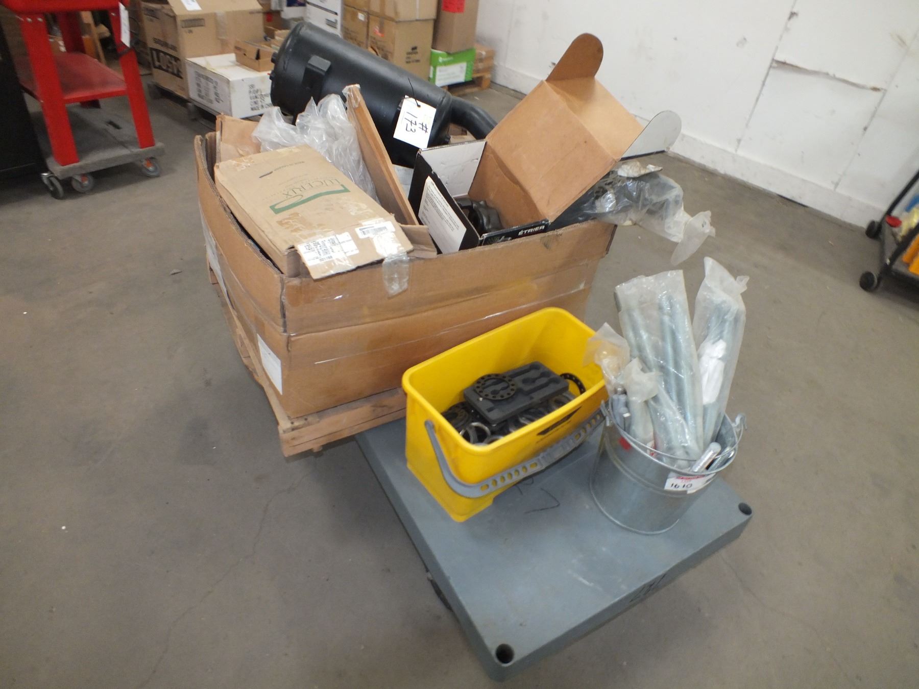 you get it all for one money, moving cart on wheels, small pallet of mixed car parts, air tank and bolts...used