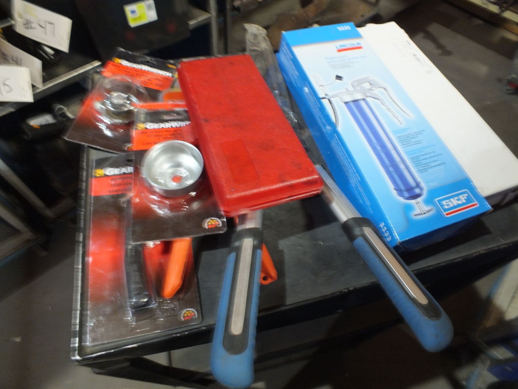 you get it all for one money, hedge clippers, radiator cap, oil cap filter wrench, cutting snips, grease gun, soldering iron...new/used
