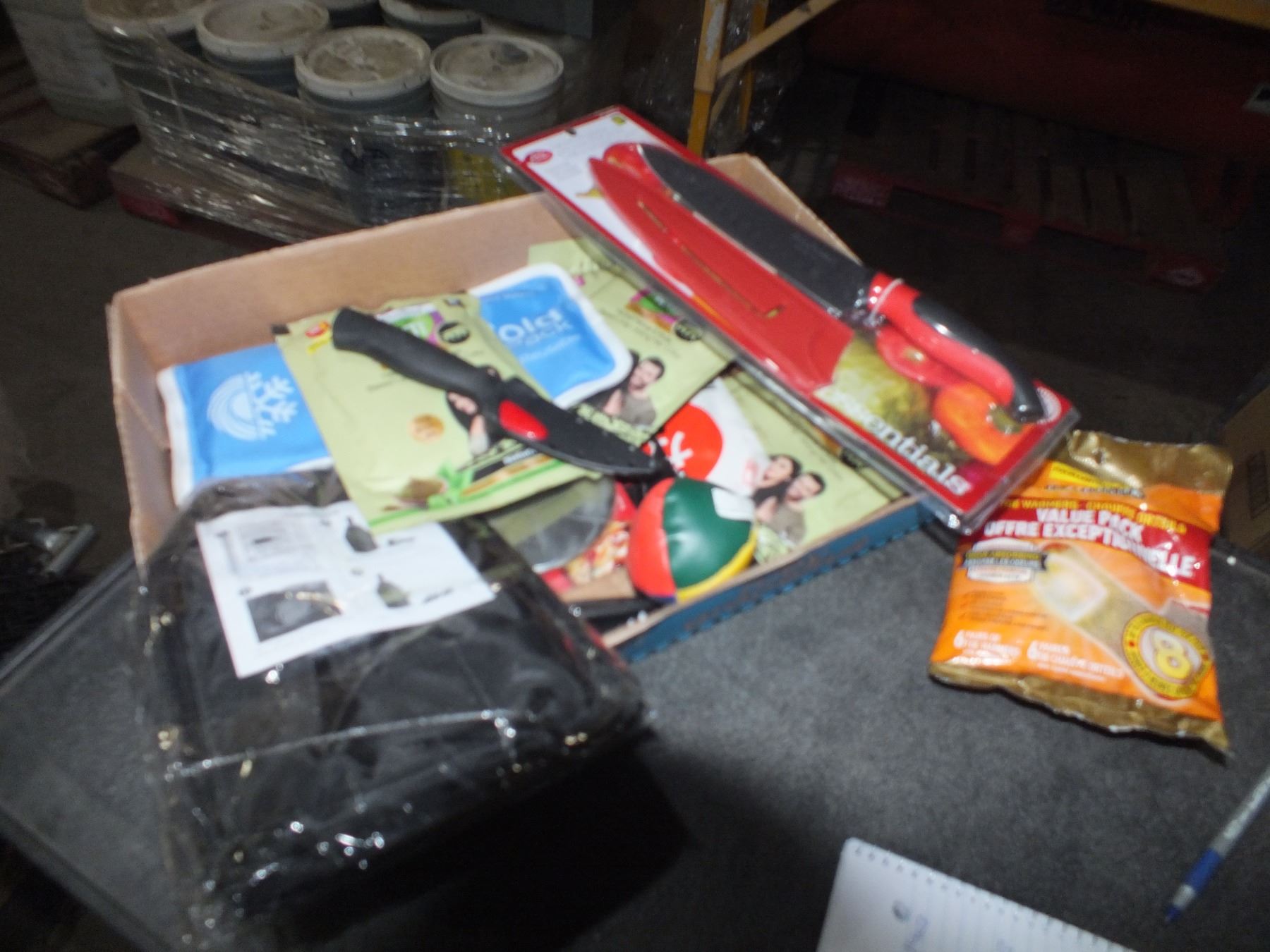 you get it all for one money, toe warmers, paring Knives, pizza cutter, chef knife, wine bottle cooler, hot cold pad, hair dye...used