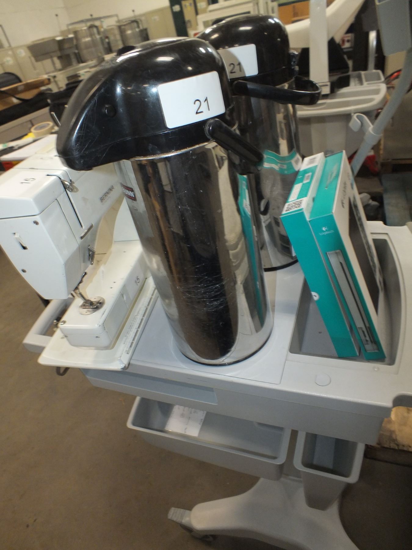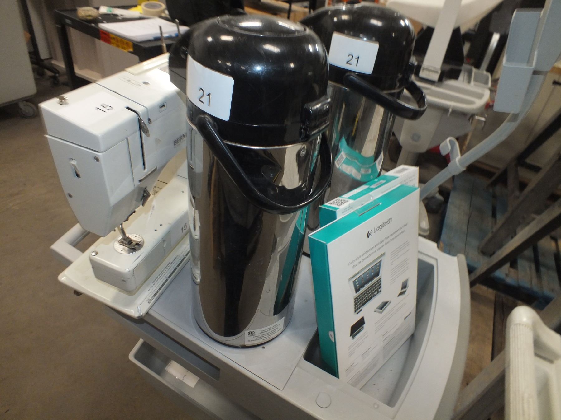 you get it all for one money, Bernina Sewing Machine, 2 hot water urns, 2 Logitech keyboard folio's for iPad 2 3&4 gen, and a small cart on wheels...used