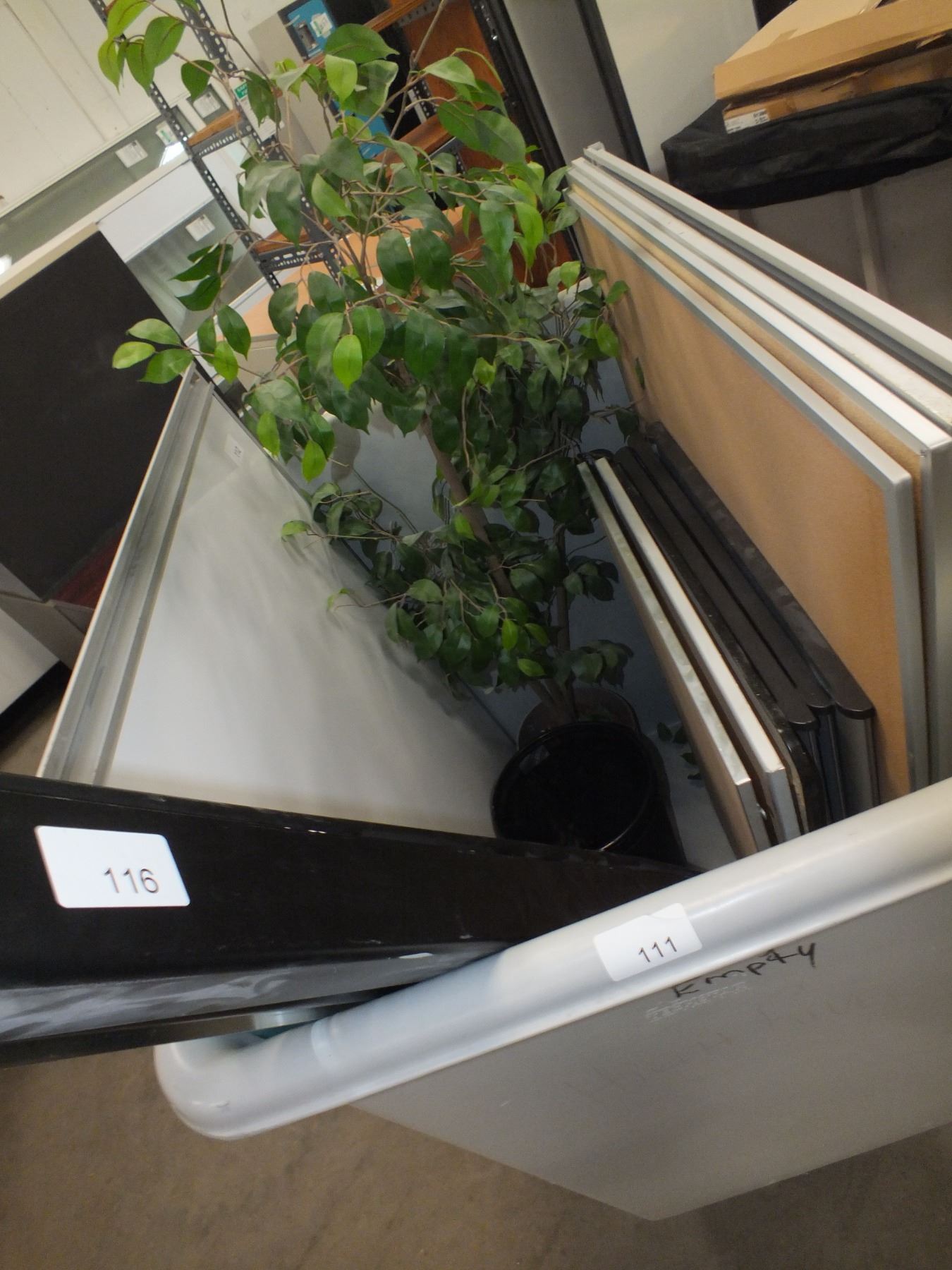 you get it all for one money, fake tree, 3 projector screens, 2 trash cans, 6 cork boards, big plastic tub on wheels...used
