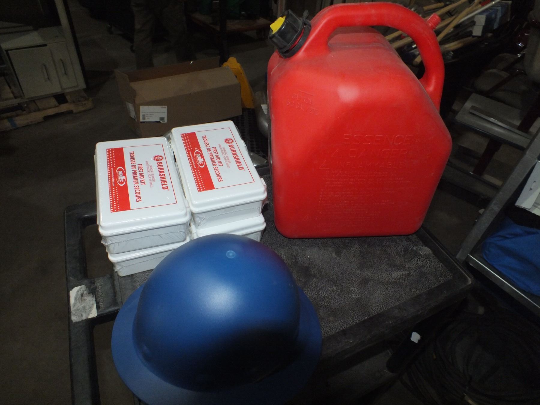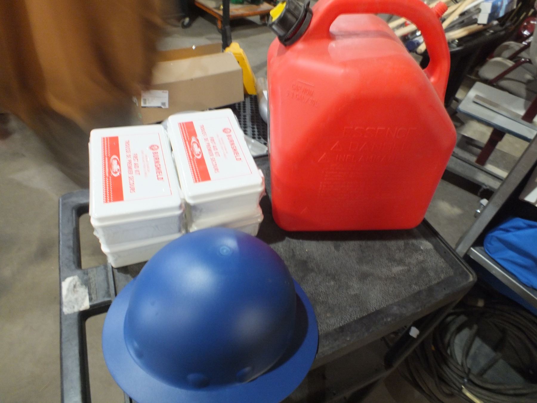 you get it all for one money, 4 small first aid kits, 1 spill kit, 1 hard hat needs new guts, and 1 20 liter gas can...new/used