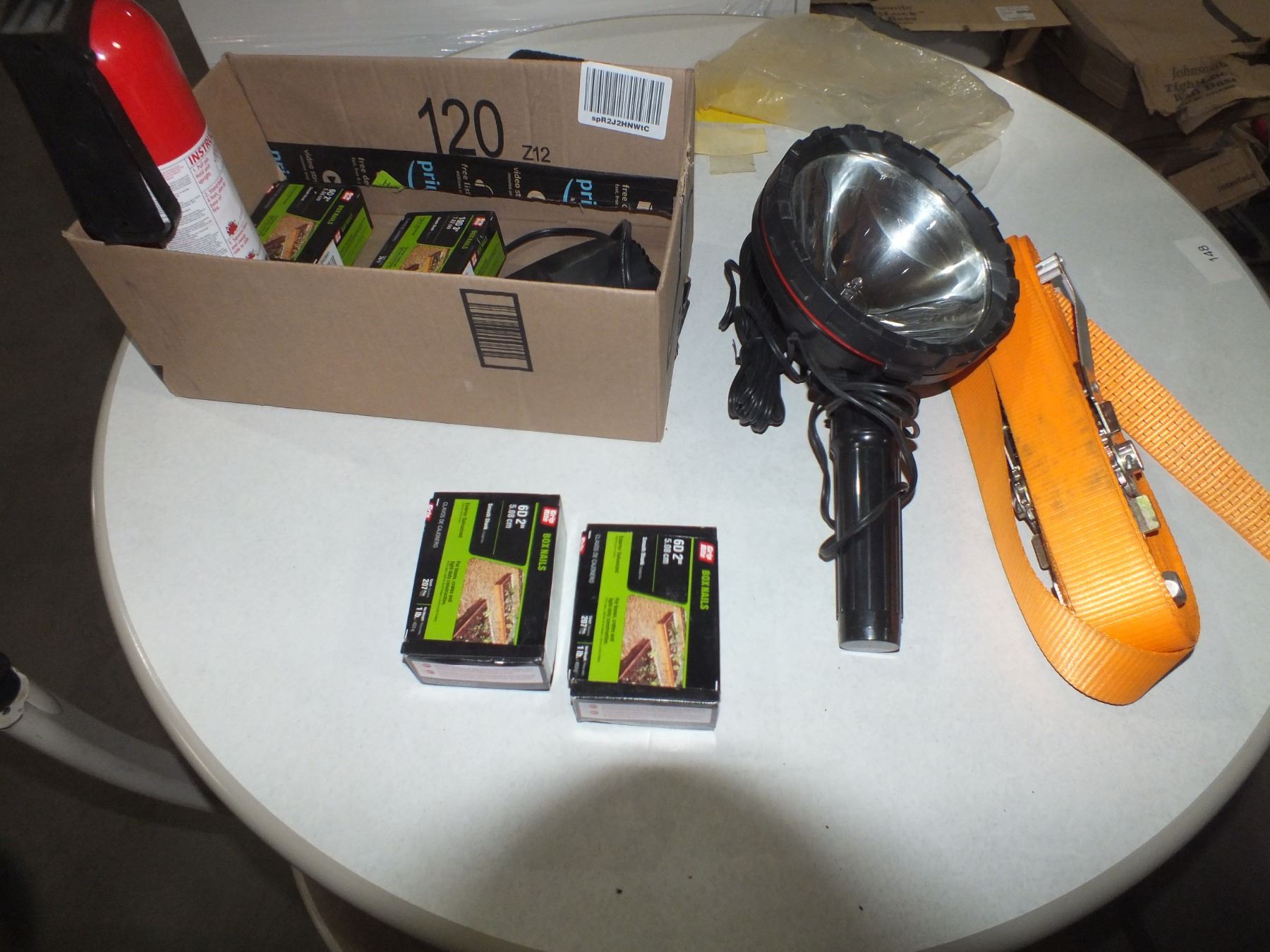 you get it all for one money, ratchet strap, spot light, small fire extinguisher, nails, and a small car ceramic heater...used