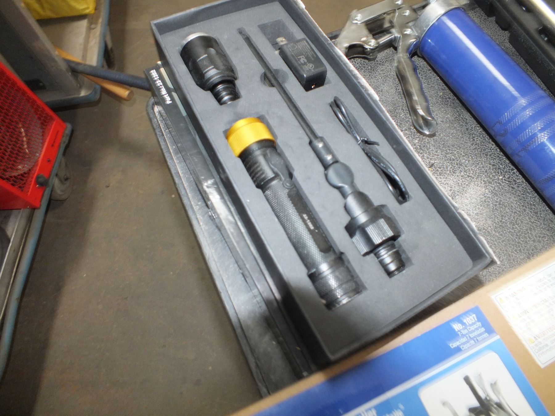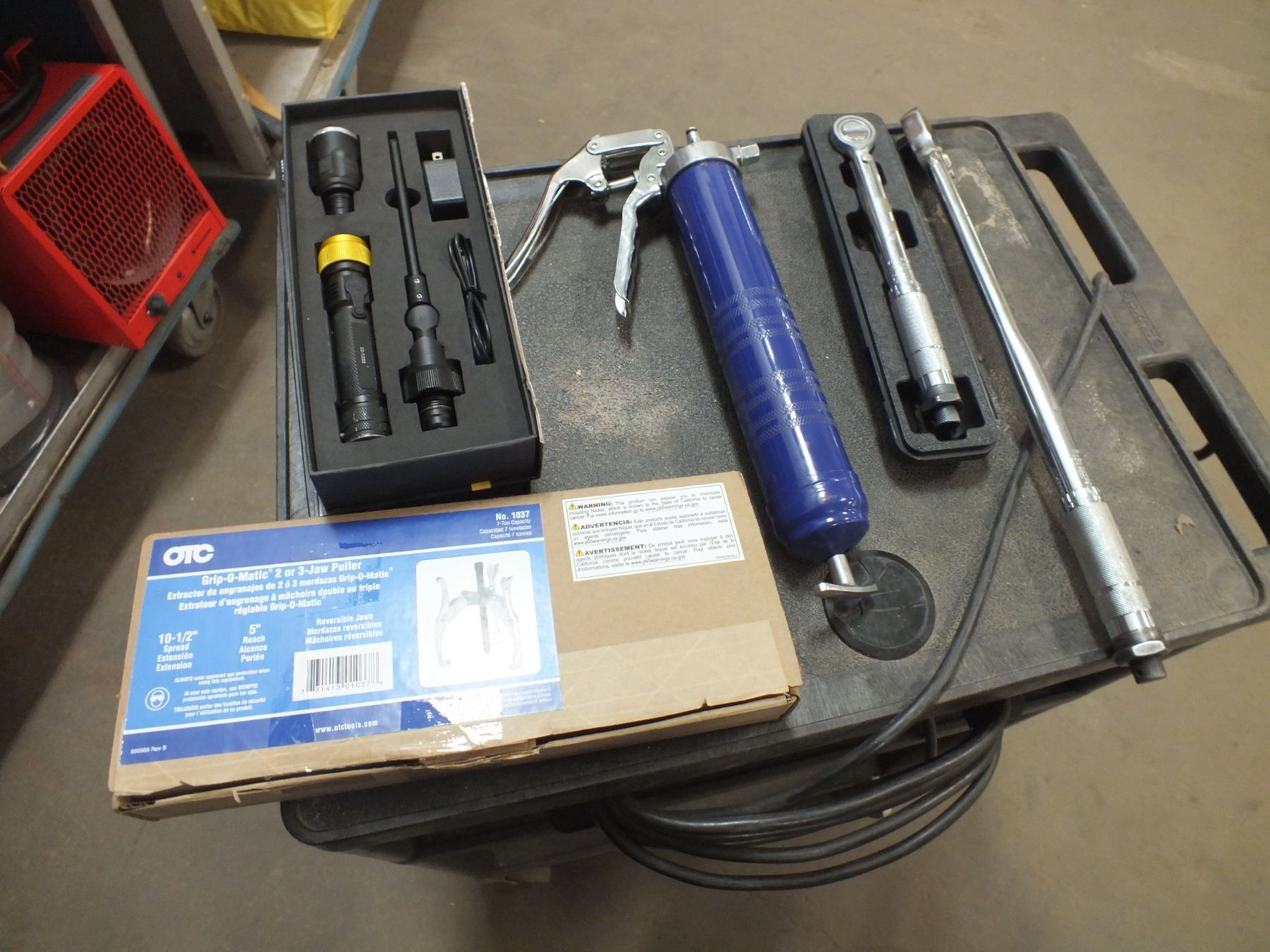 you get it all for one money, 2 torque wrenches, grease gun no hose, 2 flashlights, 1 jaw puller... store returns...