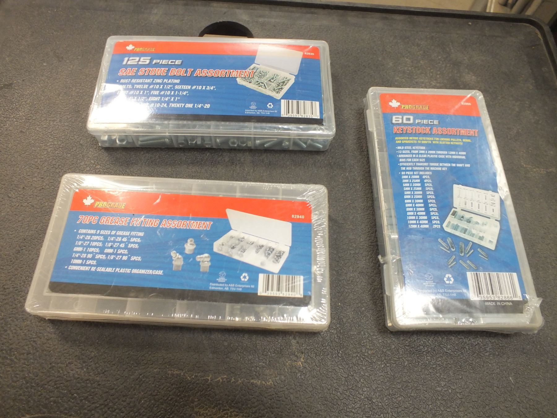 you get it all for one money, 60pc keystock kit, 70pc grease fitting kit and a 125pc sae stove bolt assortment kit...New