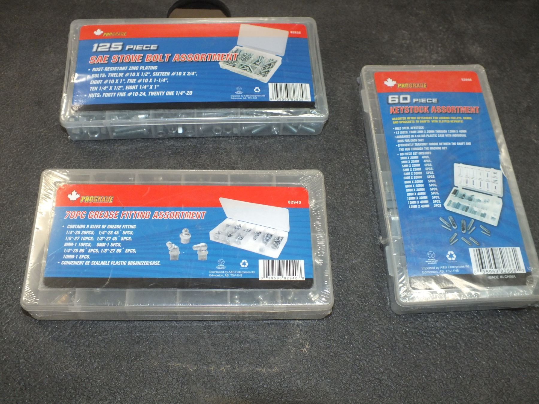 you get it all for one money, 60pc keystock kit, 70pc grease fitting kit and a 125pc sae stove bolt assortment kit...New