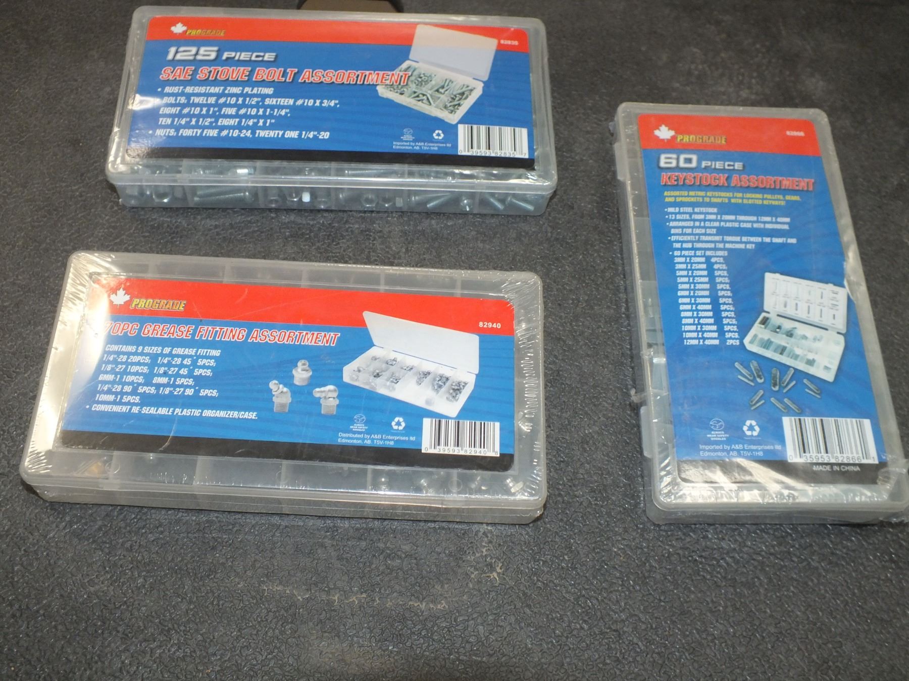 you get it all for one money, 60pc keystock kit, 70pc grease fitting kit and a 125pc sae stove bolt assortment kit...New