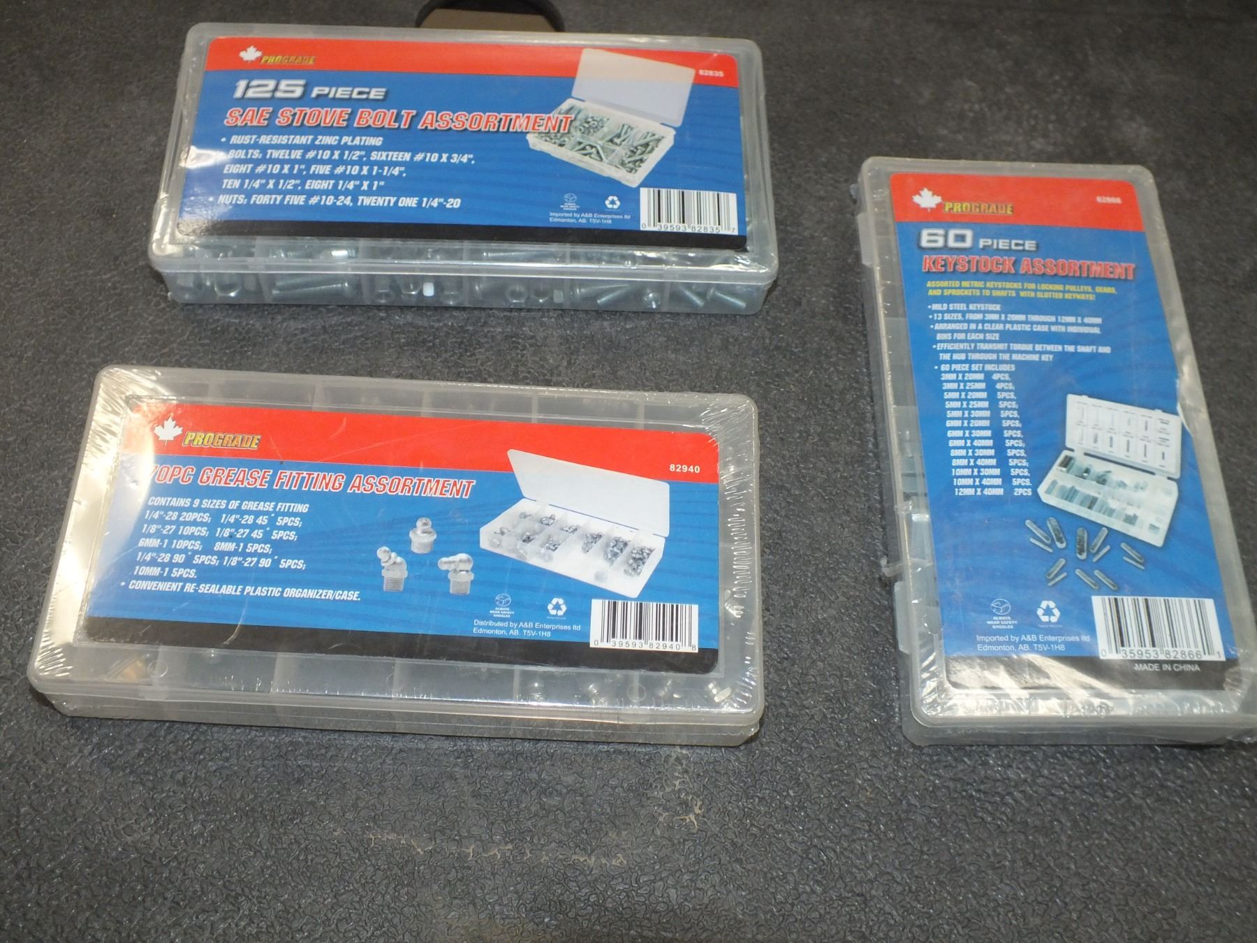 you get it all for one money, 60pc keystock kit, 70pc grease fitting kit and a 125pc sae stove bolt assortment kit...New