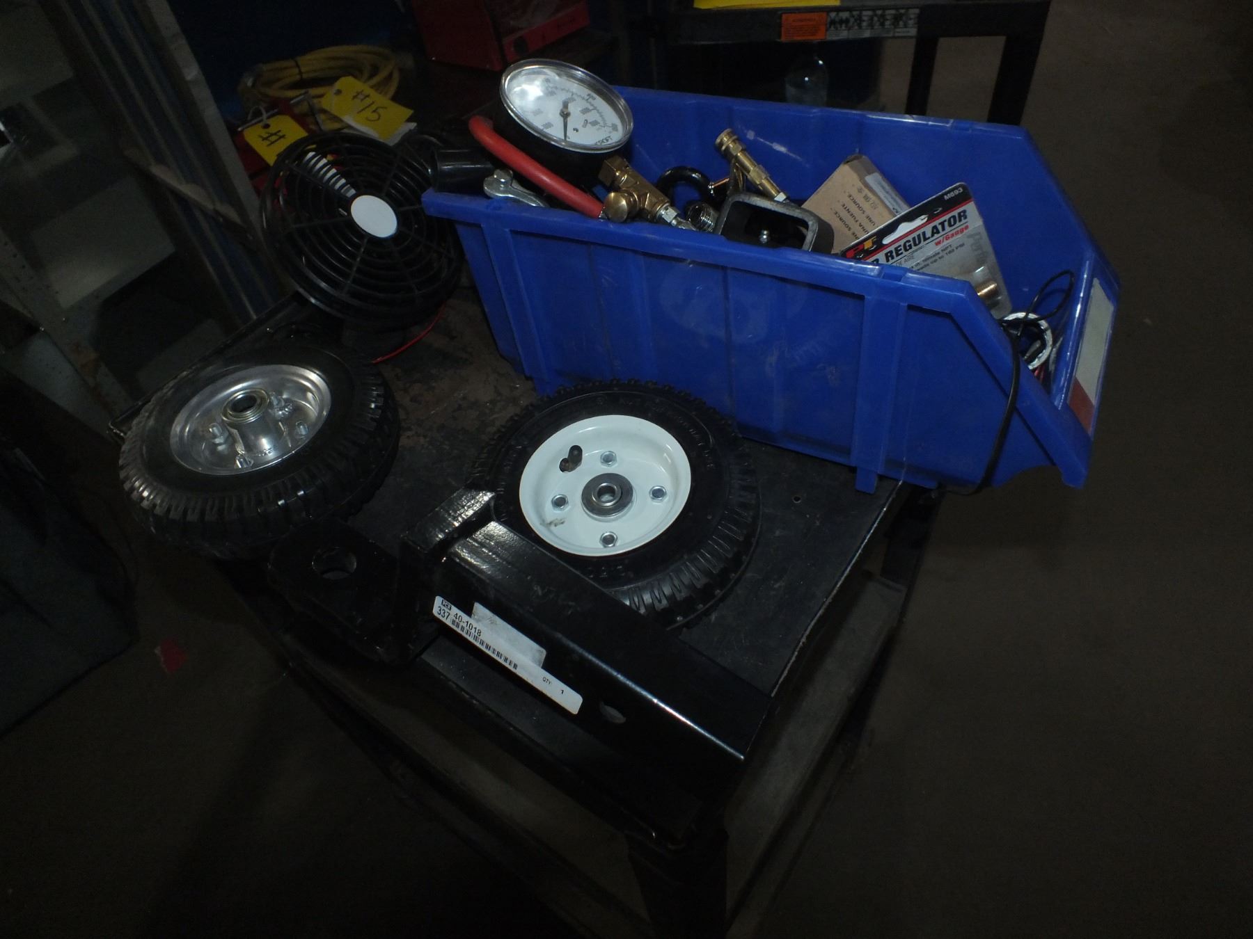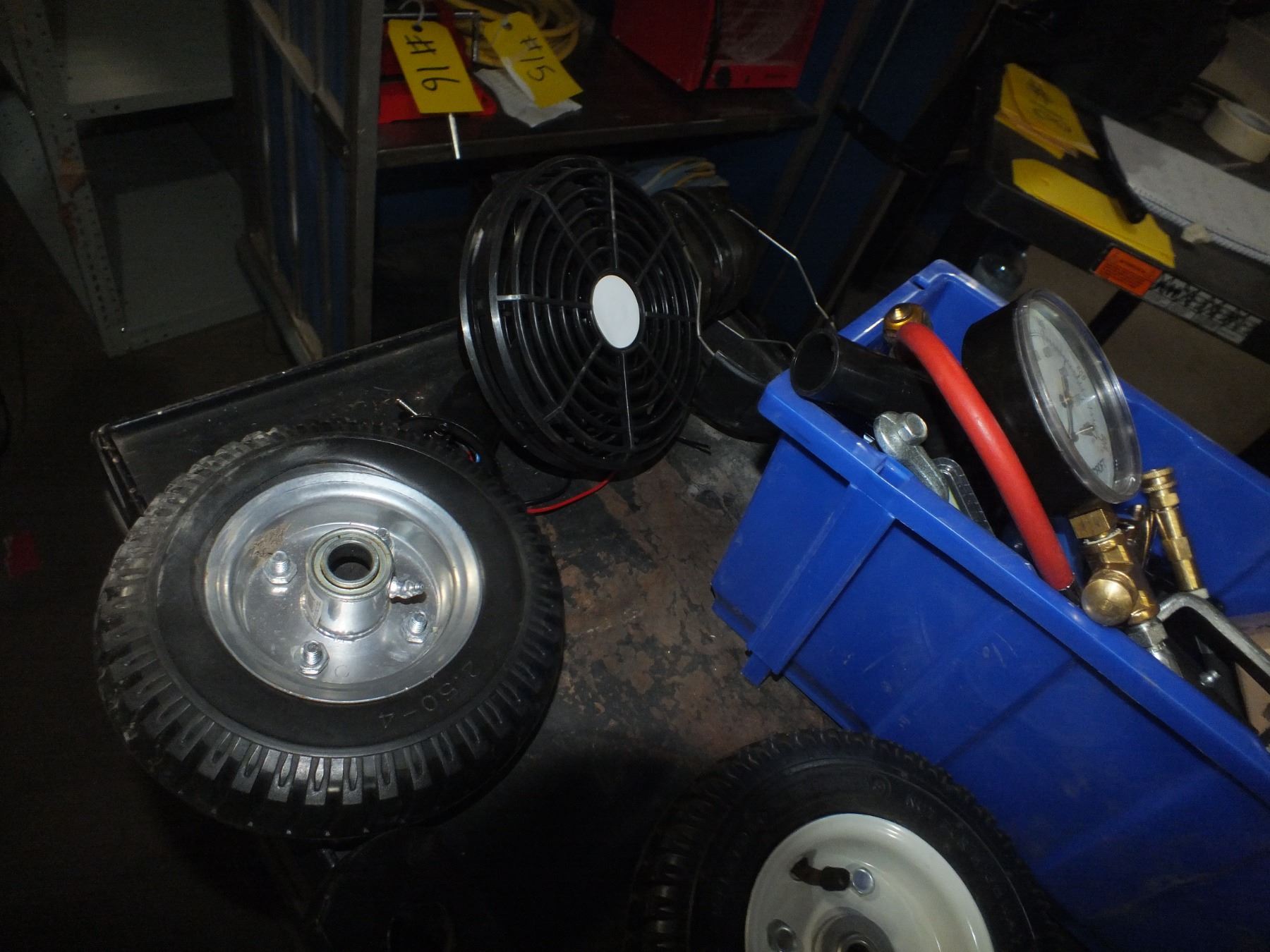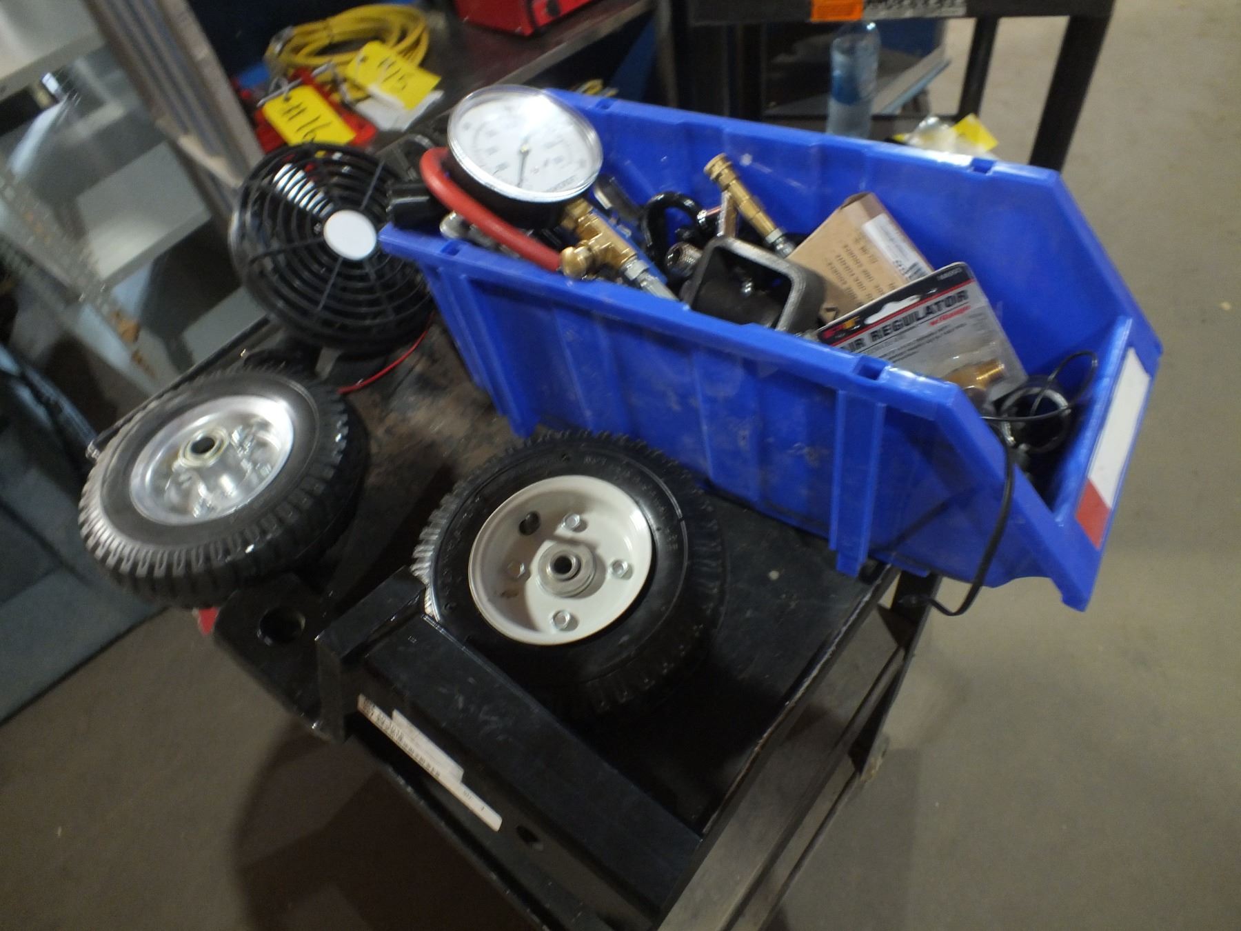 you get it all for one money, air chuck, 2 small wheels, air regulator, sockets, metal hardware, ear muffs, small fan, trailer hitch...used