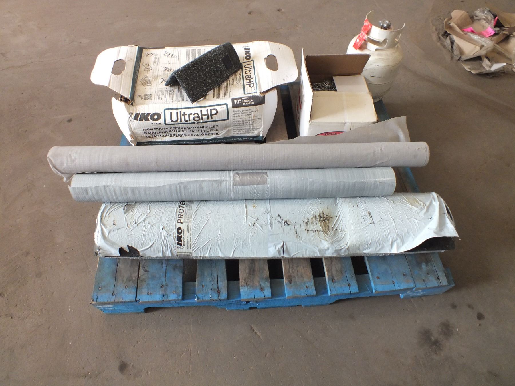 you get it all for one money, roofing underlay, 1 box of nails, 1 small propane tank, 1 box of high profile ridge cap shingles...new/used