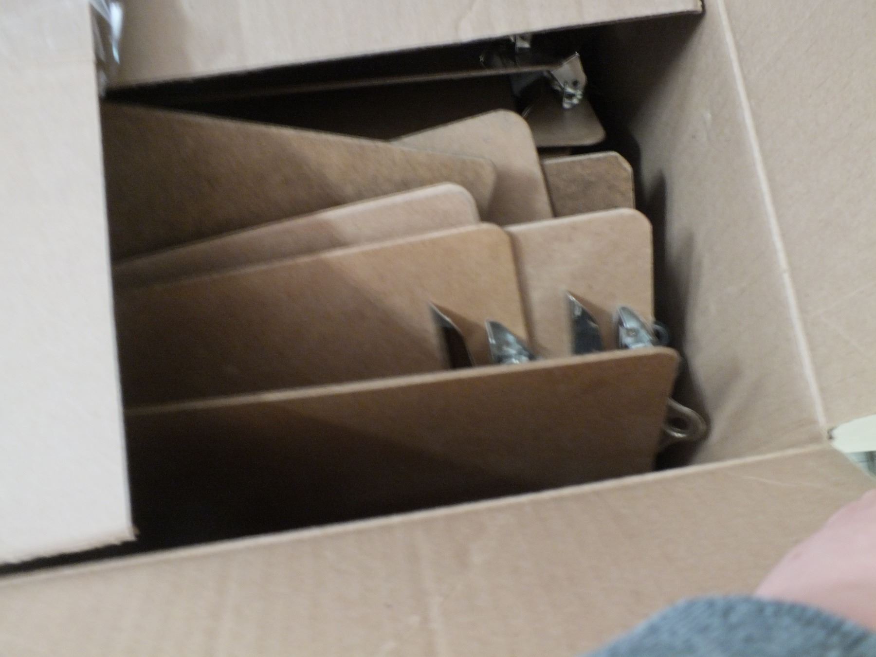 you get it all for one money, clip boards, fan blades, florescent socket holders, folders, glassware...lots here...new/used