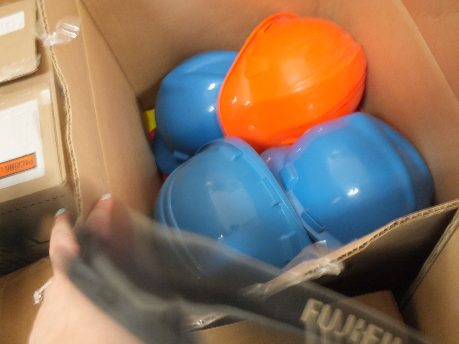 you get it all for one money, helmets, wipes, dispenser, mailing tubes, box of bleach and more...new/used