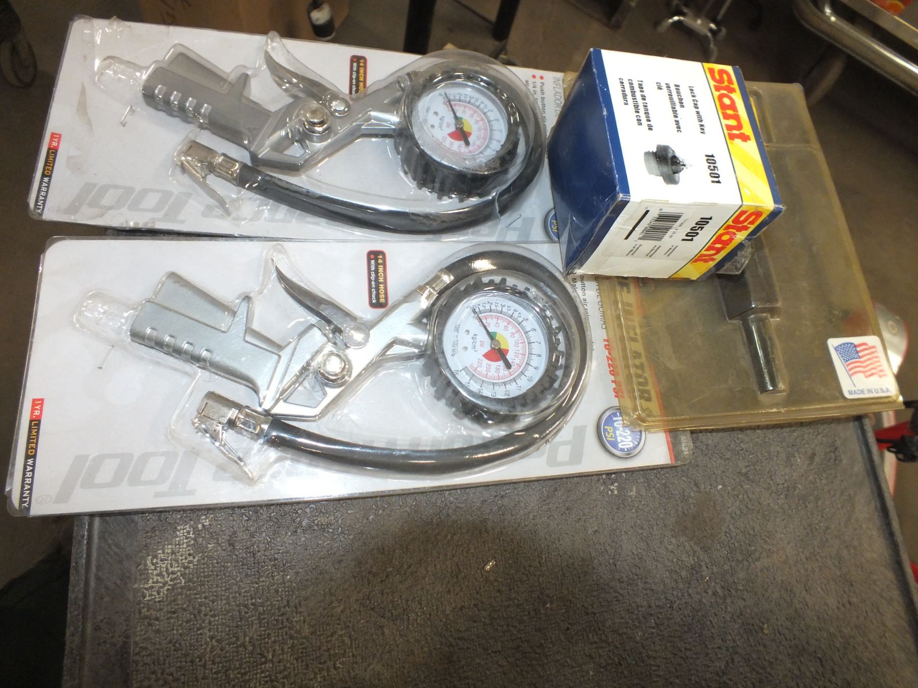 you get it all for one money, 2 tire inflators, gas cap, power steering pump pully...new/used
