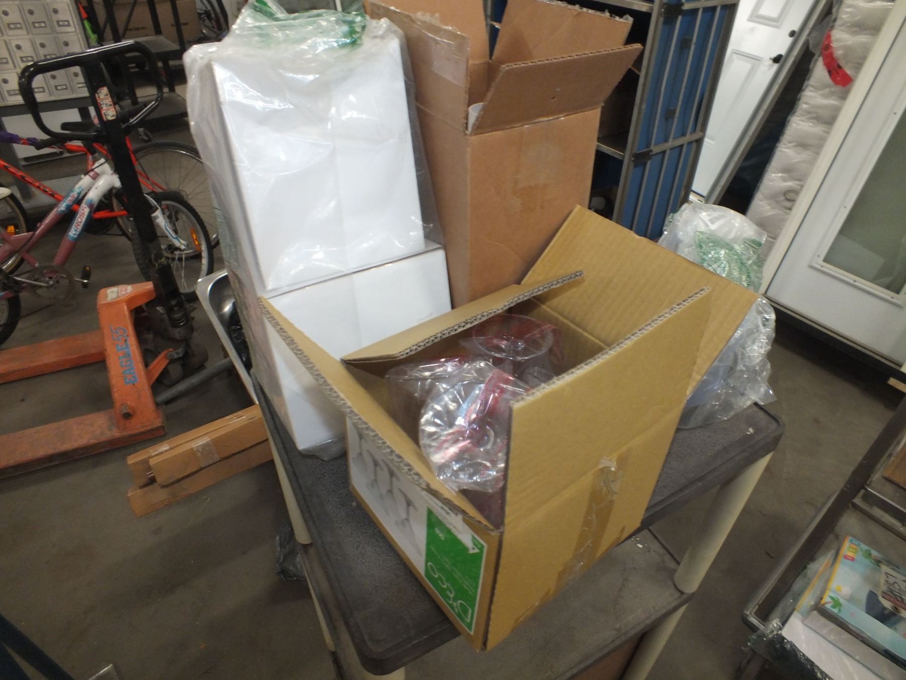 you get it all for one money, 8 martini glasses, 4 margarita glasses, plastic storage container, art glitter, dust deputy for vacuum...store returns...like new