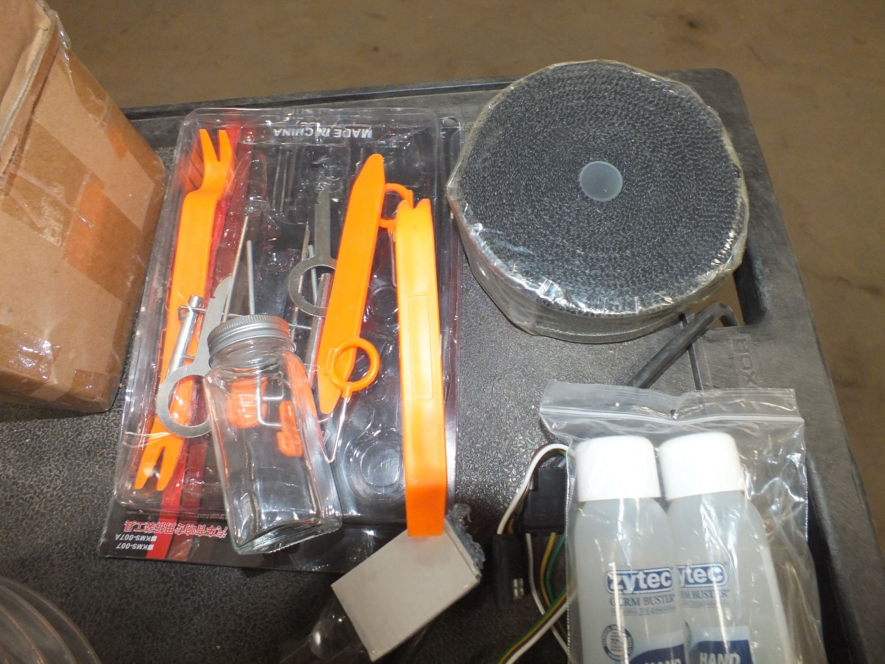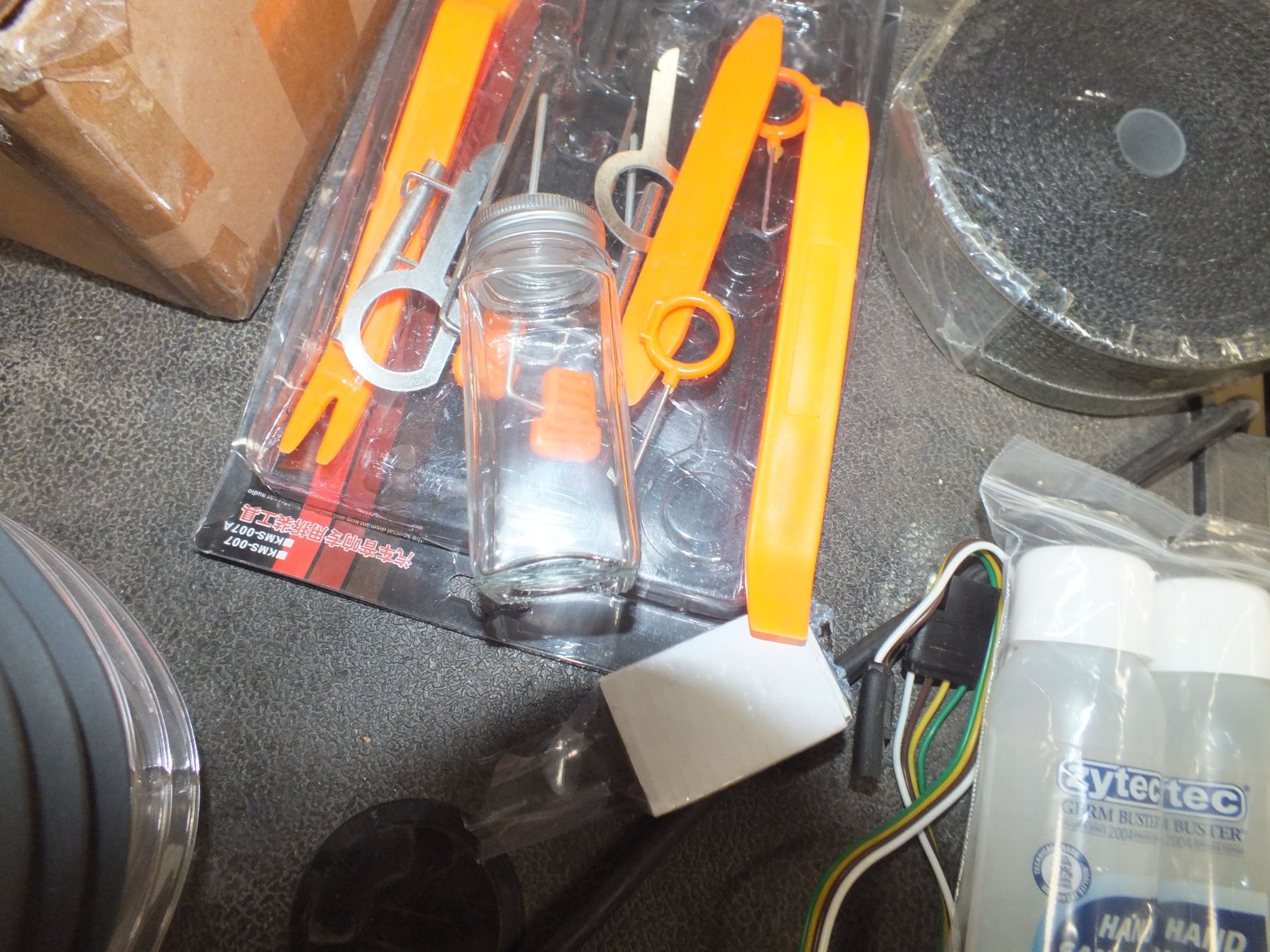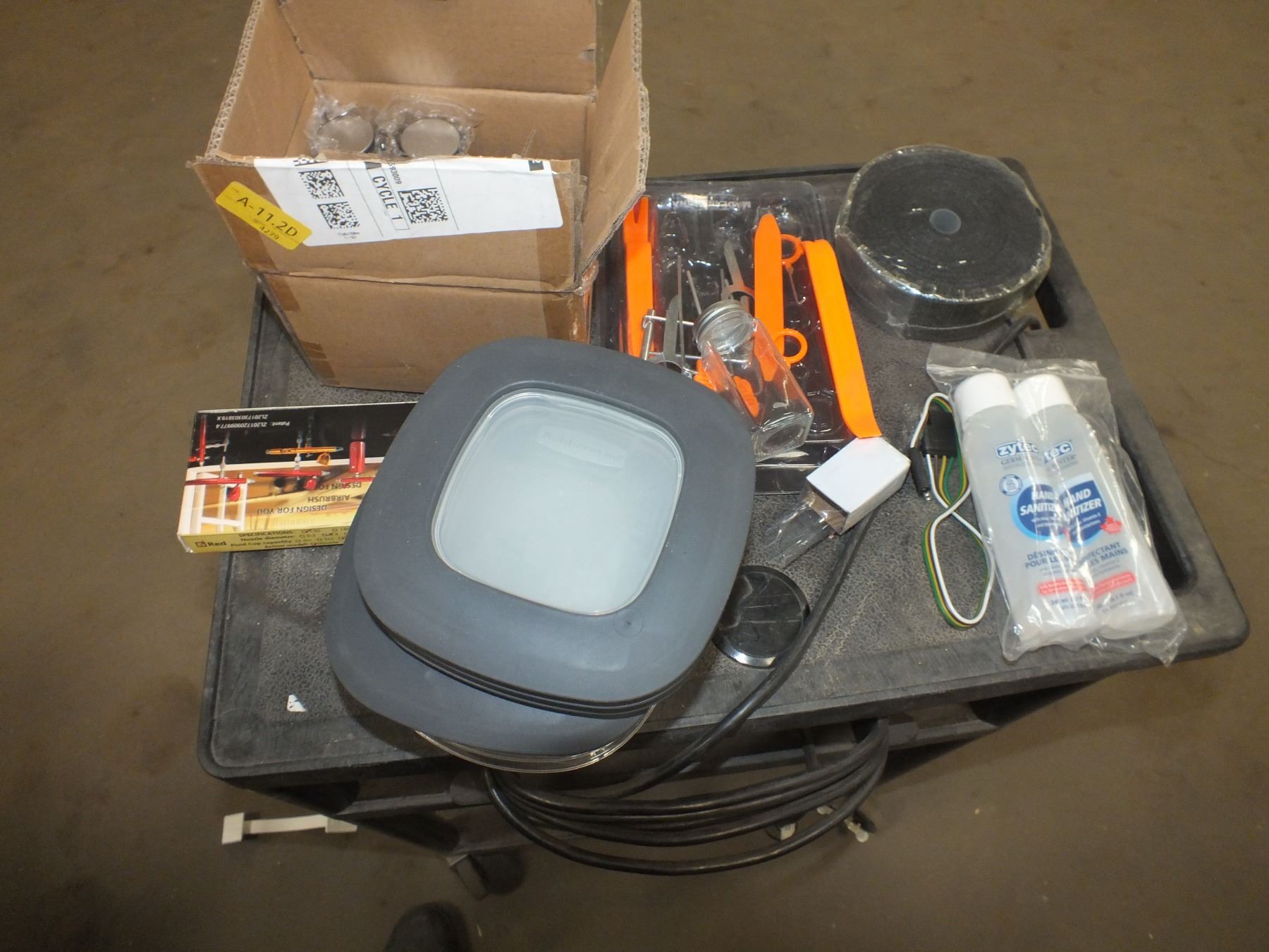 you get it all for one money, 4 small food containers, hand sanitizer, 6 spice jars, roll of strapping, small air brush...new/used