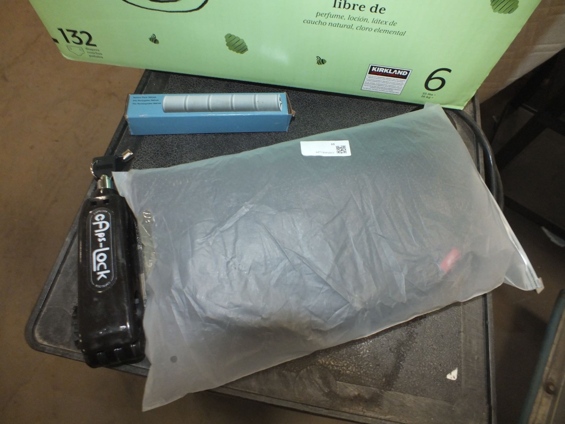 you get it all for one money, stove burner liners, furniture glide pads, motorcycle ignition lock, air seat for motorcycle, and a battery pack...new/used