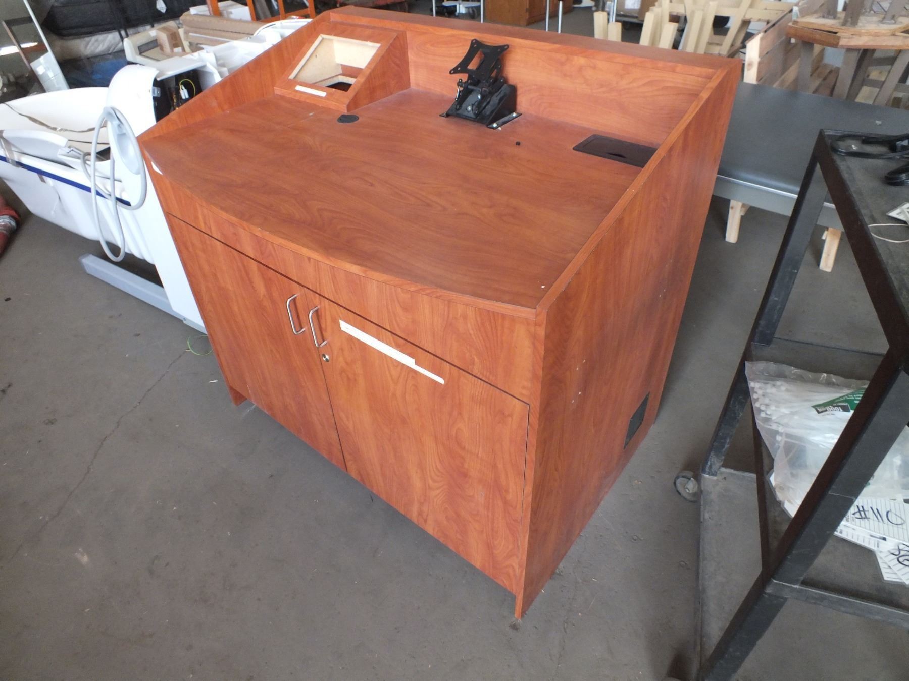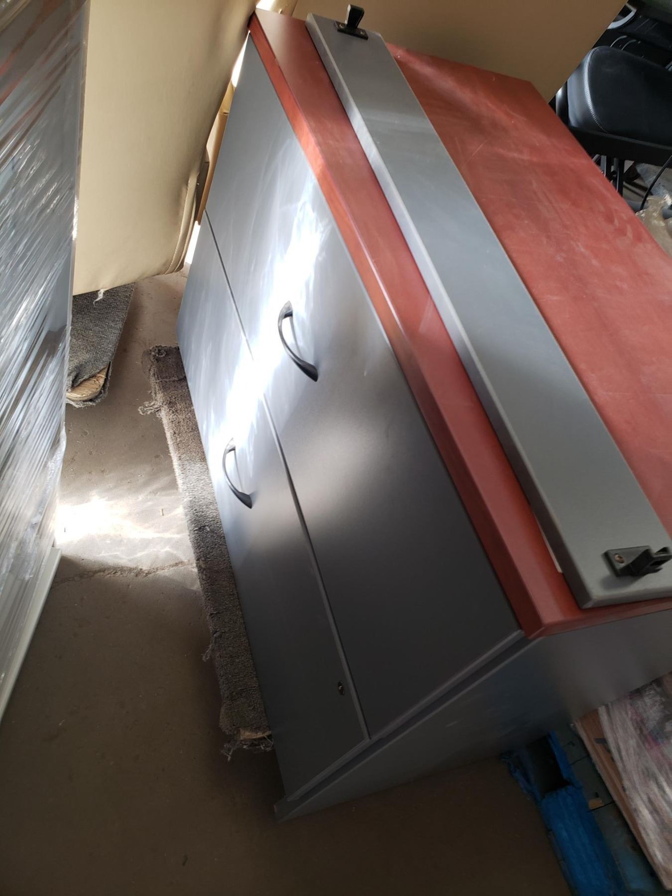 you get it all for one money, book shelf, filing cabinet, brown desk, grey table and a display board...used