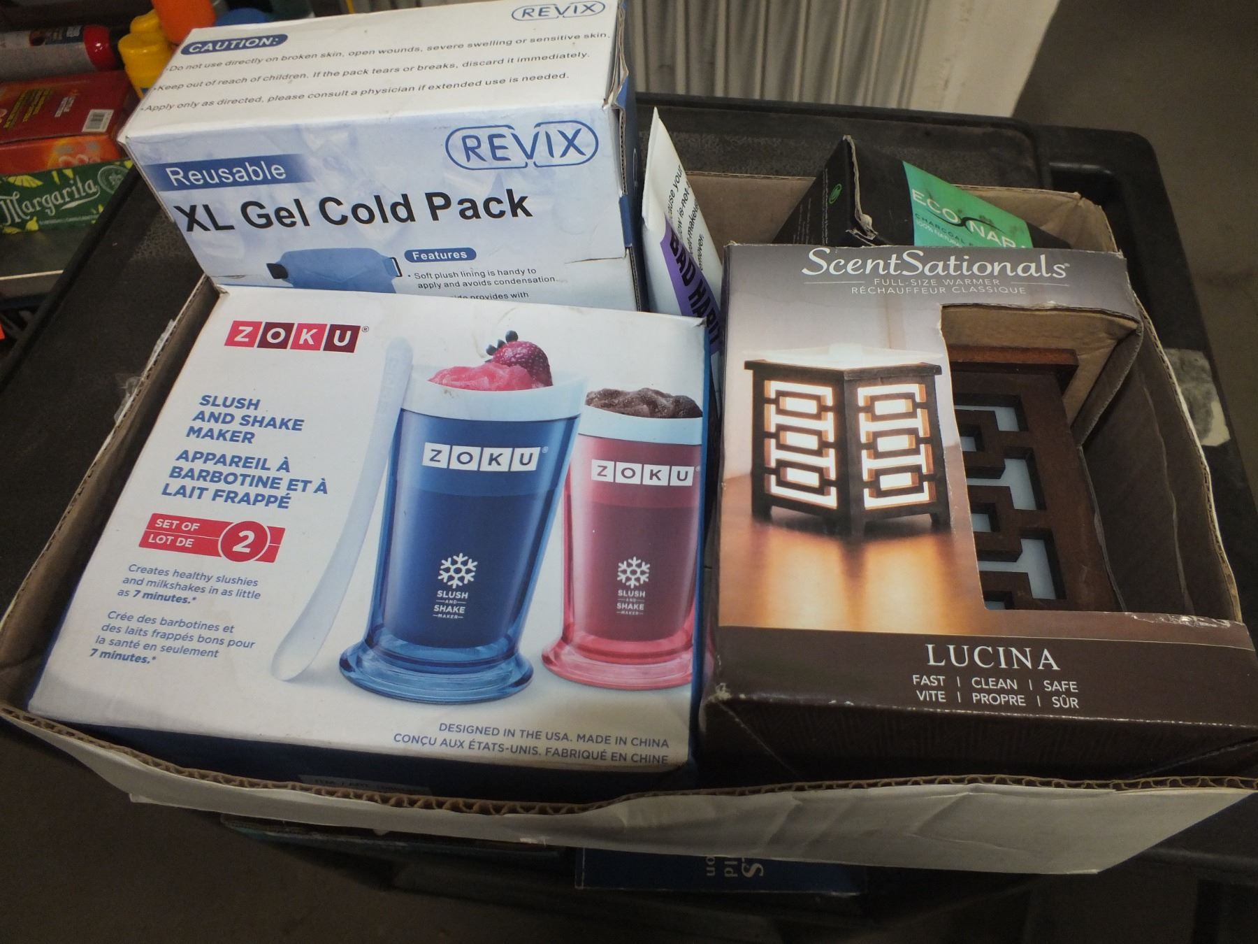 you get it all for one money, 2 boxes of spices, vitamins, ice pack, joint pain pills, incents, slush & shake maker...new/used