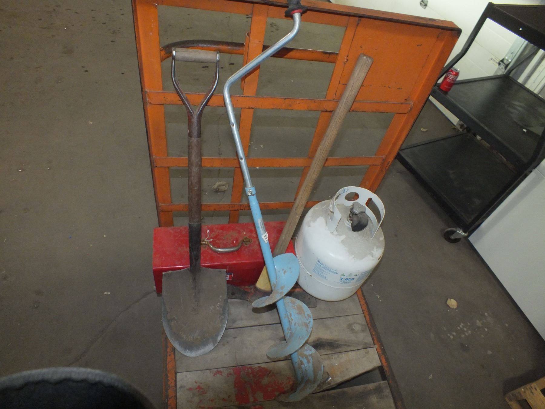 you get it all for one money, small auger, small spade shovel, pick axe, propane tank, small tool box...RCMP Theft recovery...used