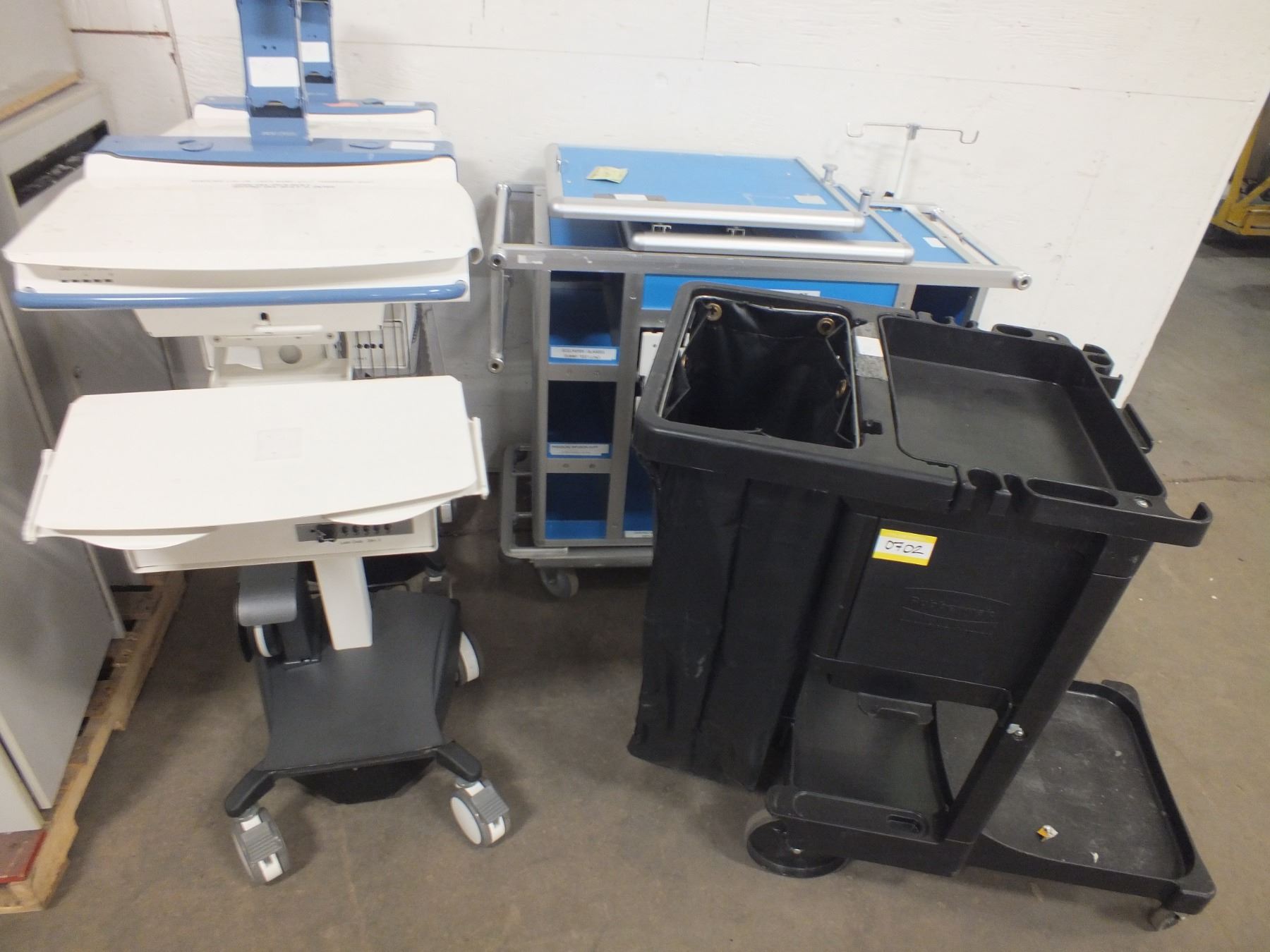 you get it all for one money, 4 wooden trash cans, 3 medical carts and 1 janitorial cart...used