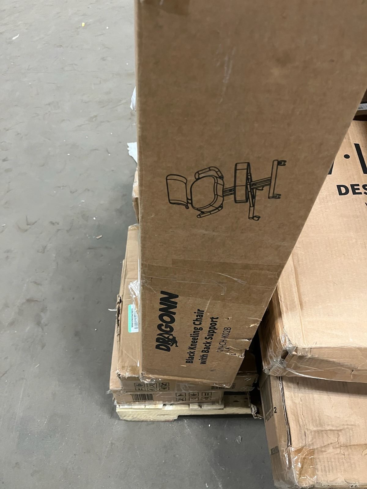 you get it all for one money, kneeling chair, desk riser, and monitor mounts...store returns...like new