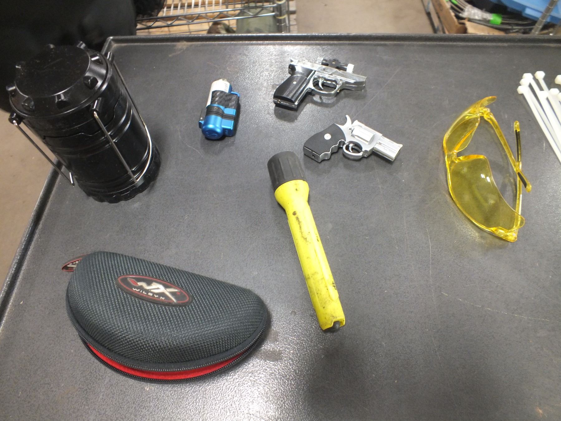 you get it all for one money, flashlight, sunglasses, safety glasses, 2 gun lighters, camping light...used